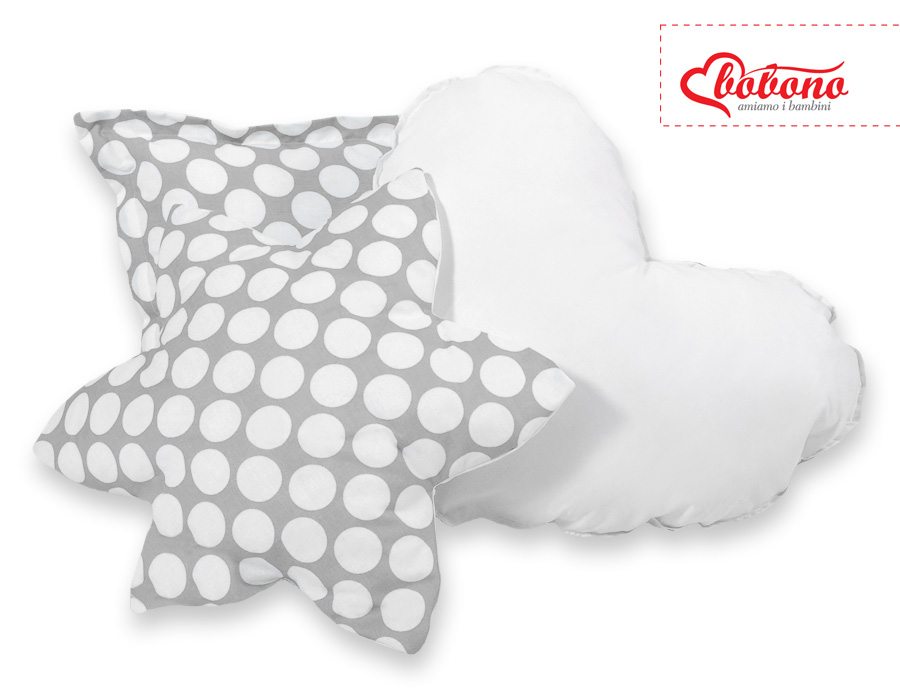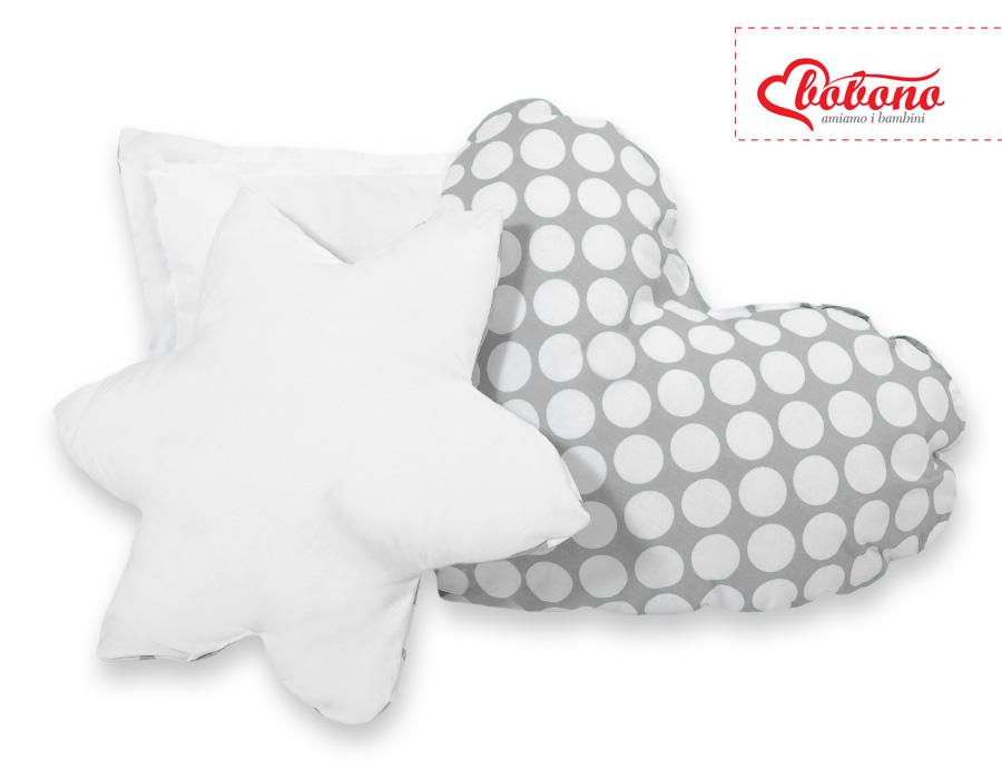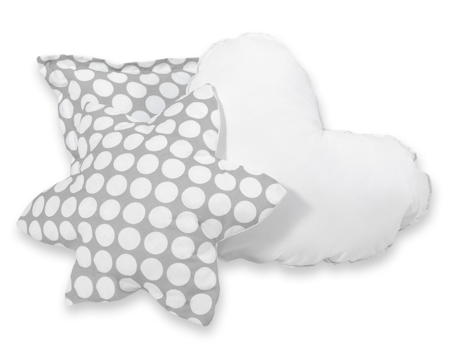 Bløde, fluffy puder, der matcher teltfarven. Hver pude i forskellig original, dekorativ form. Puder er tofarvede - hver side lavet af forskelligt materiale. Også perfekt som en farverig dekoration til børneværelset.