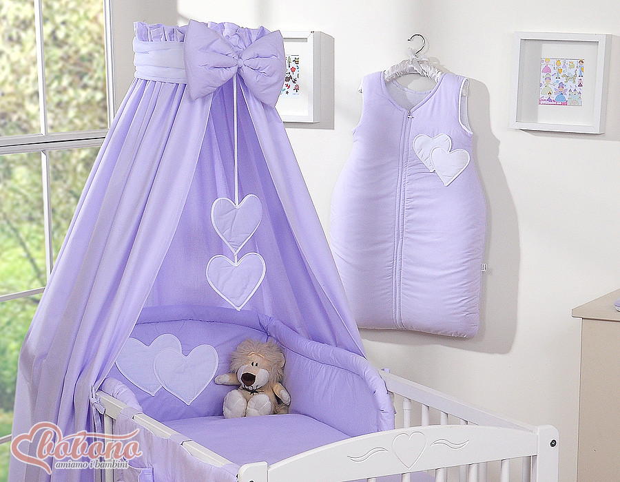Hjemmeside » Sengesæt til baby » Sengesæt Kollektion HJERTER » Sengehimmel i Bomuld Hjerter » Baby sengehimmel lavet af bomuld for tremmeseng - Hanging Hearts Lilla Bomuld