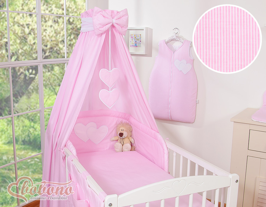 Baby sengehimmel lavet af bomuld for tremmeseng - Hanging Hearts  Lyserød Pink BomuldBaby sengehimmel lavet af bomuld for tremmeseng - Hanging Hearts  Lyserød Pink Bomuld