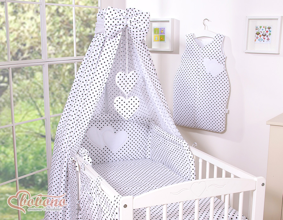 Hjemmeside » Sengesæt til baby » Sengesæt Kollektion HJERTER » Sengehimmel i Bomuld Hjerter » Baby sengehimmel lavet af bomuld for tremmeseng - Hanging Hearts Sort Polkaprikker Bomuld