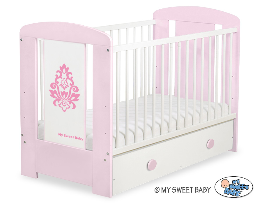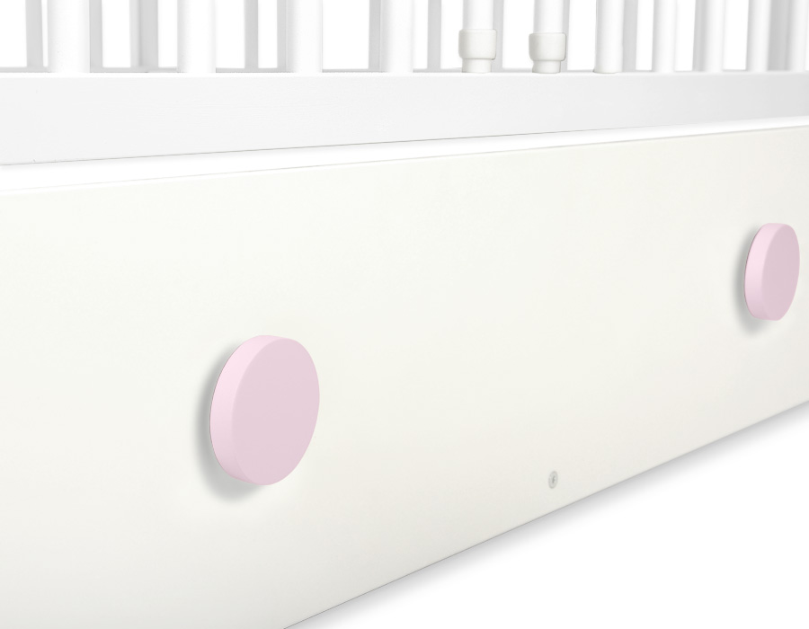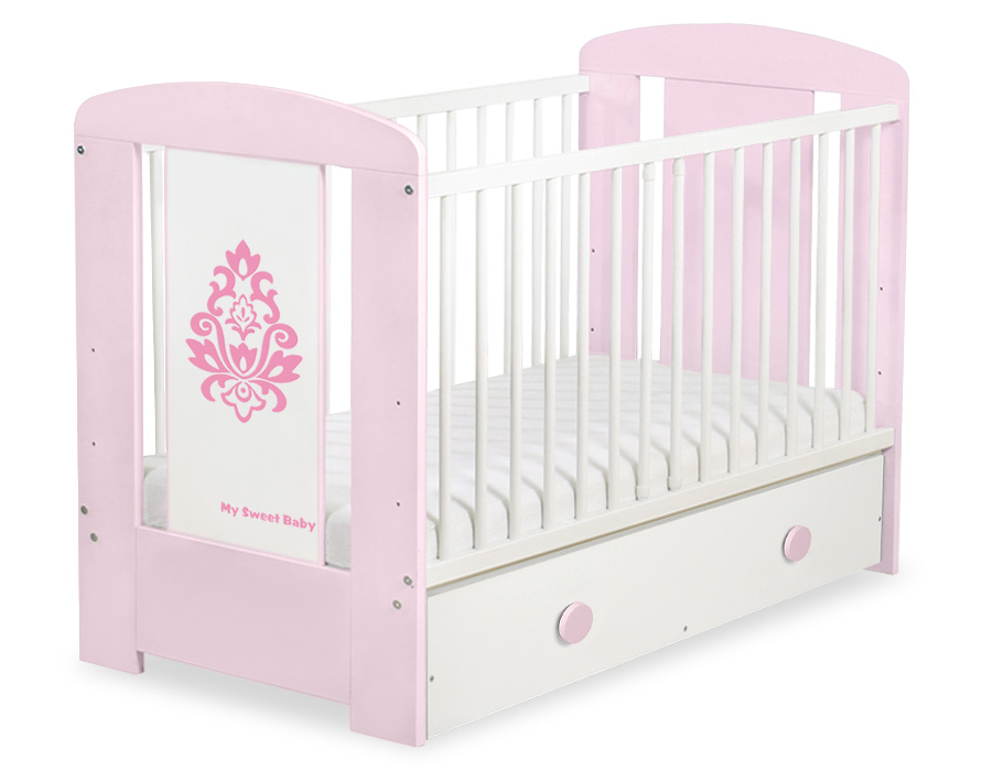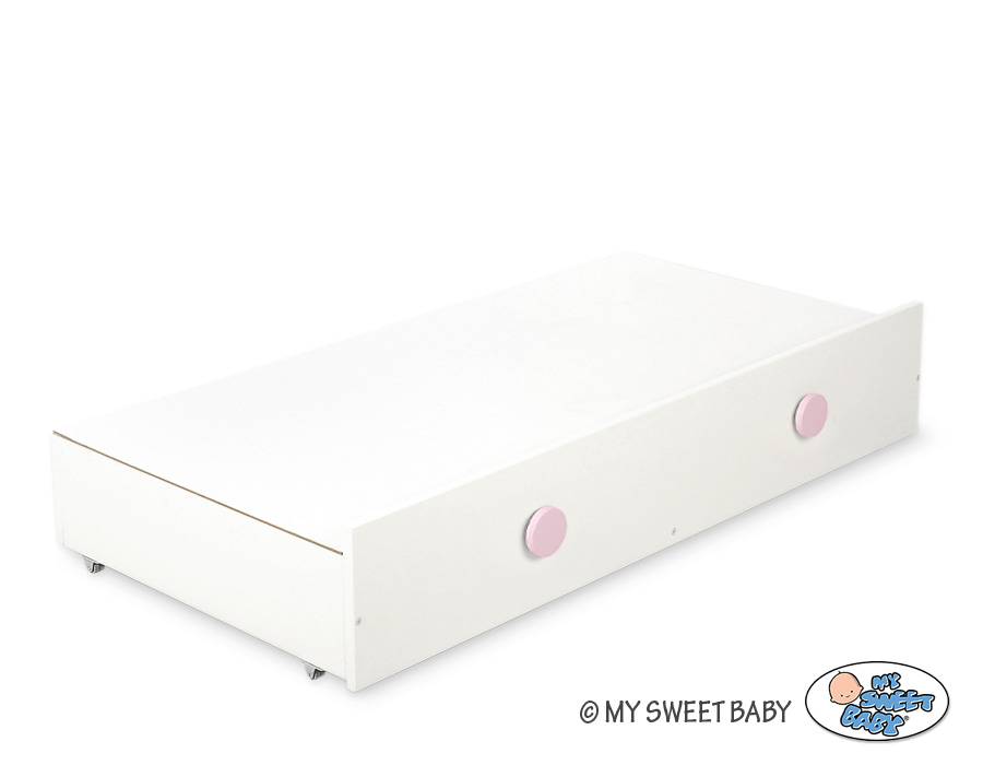 En skuffe for tremmeseng 120x60cm med dekorative, håndlavede håndtag.