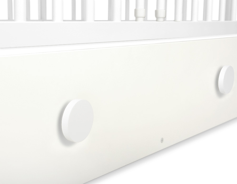 * Aftagelige tremmer - Et moderne fjedersystem for fjernelse af tre tremmer. Tremmerne kan ikke fjernes af barnet.