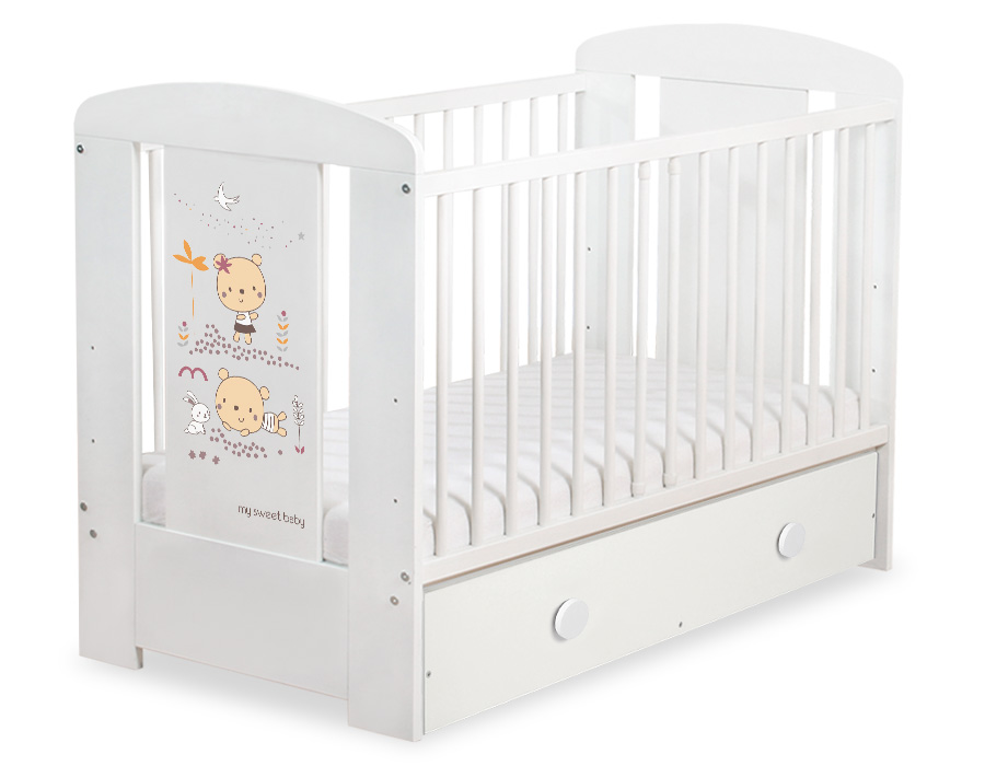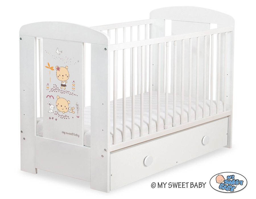Hjemmeside » Tremmesenge 120x60 cm » Tremmesenge med Skuffe 120x60cm » Børnesenge med tremmer med Skuffe Happy » Baby tremmeseng med Skuffe 120x60cm Happy MAXI