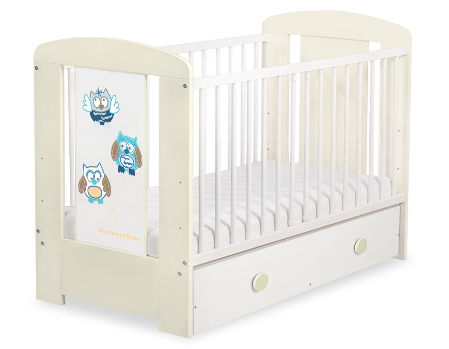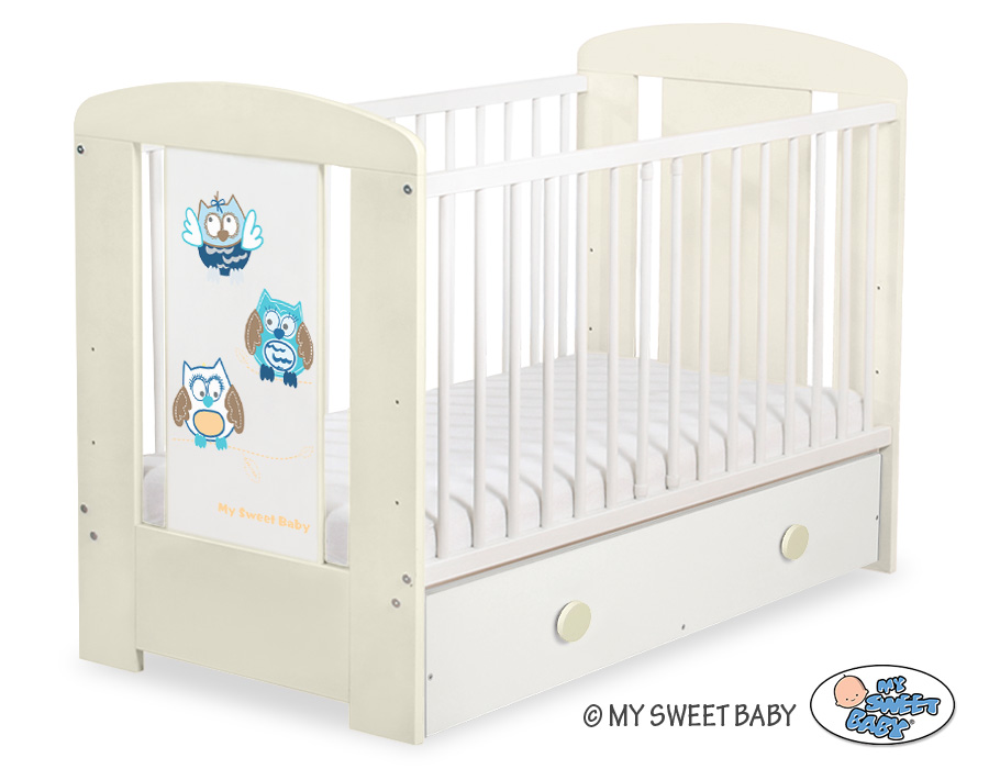 Hjemmeside » Tremmesenge 120x60 cm » Tremmesenge med Skuffe 120x60cm » Babysenge 120x60cm med Skuffe Munter Ugler » Baby tremmeseng med Skuffe 120x60cm Munter Ugler MAXI