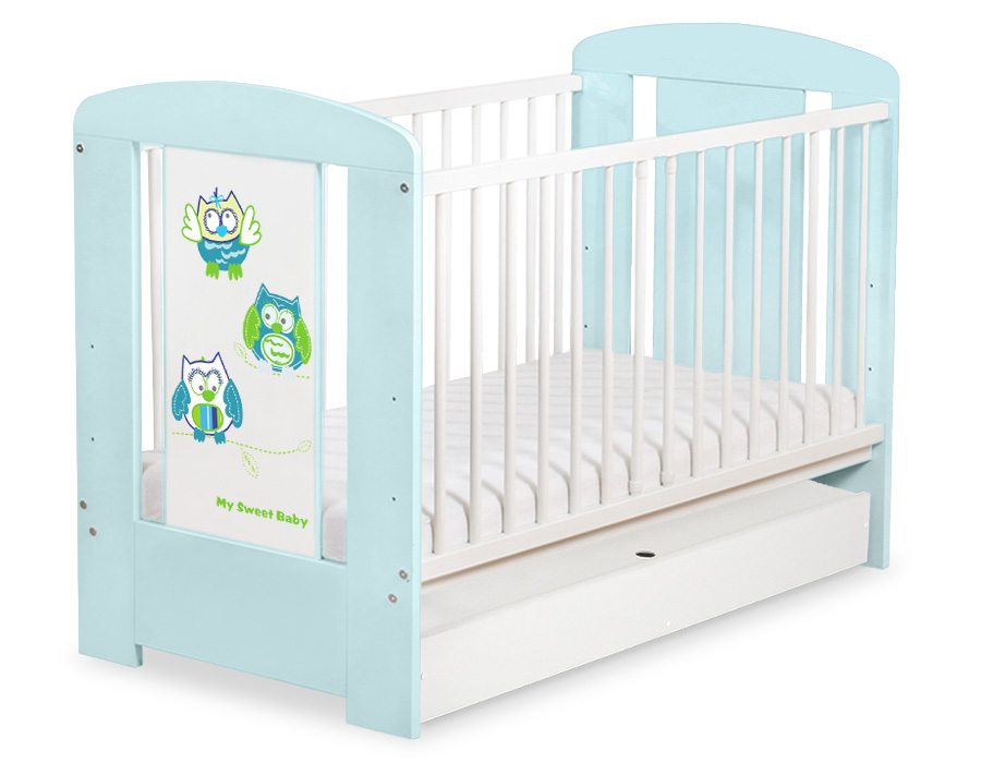Hjemmeside » Tremmesenge 120x60 cm » Tremmesenge med Skuffe 120x60cm » Babysenge 120x60cm med Skuffe Munter Ugler » Baby tremmeseng med Skuffe 120x60cm Munter Ugler STANDARD