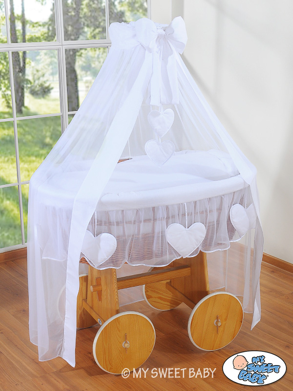 Hjemmeside » Kurvevugge » Babyvugge med Sengehimmel Deluxe » Babyvugge med Sengehimmel Deluxe » Babykurv Baby Vugge med gardiner Hvid Amelie