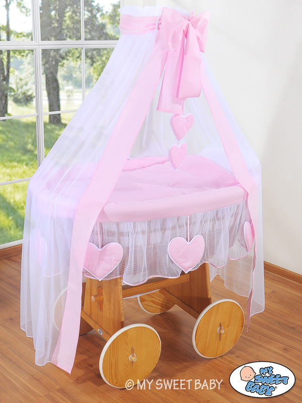 Hjemmeside » Kurvevugge » Babyvugge med Sengehimmel Deluxe » Babyvugge med Sengehimmel Deluxe » Babykurv Baby Vugge med gardiner Lyserød Pink Amelie
