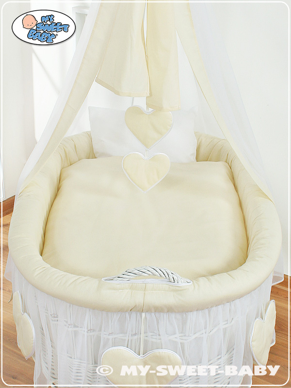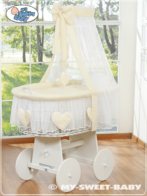 Hjemmeside » Kurvevugge » Flettet vugge på hjul med sengehimmel » Flettet vugge på hjul med sengehimmel » Babykurv med gardiner Amelie