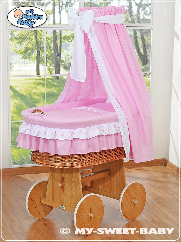 Hjemmeside » Kurvevugge » Flettet vugge på hjul med sengehimmel » Flettet vugge på hjul med sengehimmel » Babykurv med gardiner Lyserød Pink Bellamy