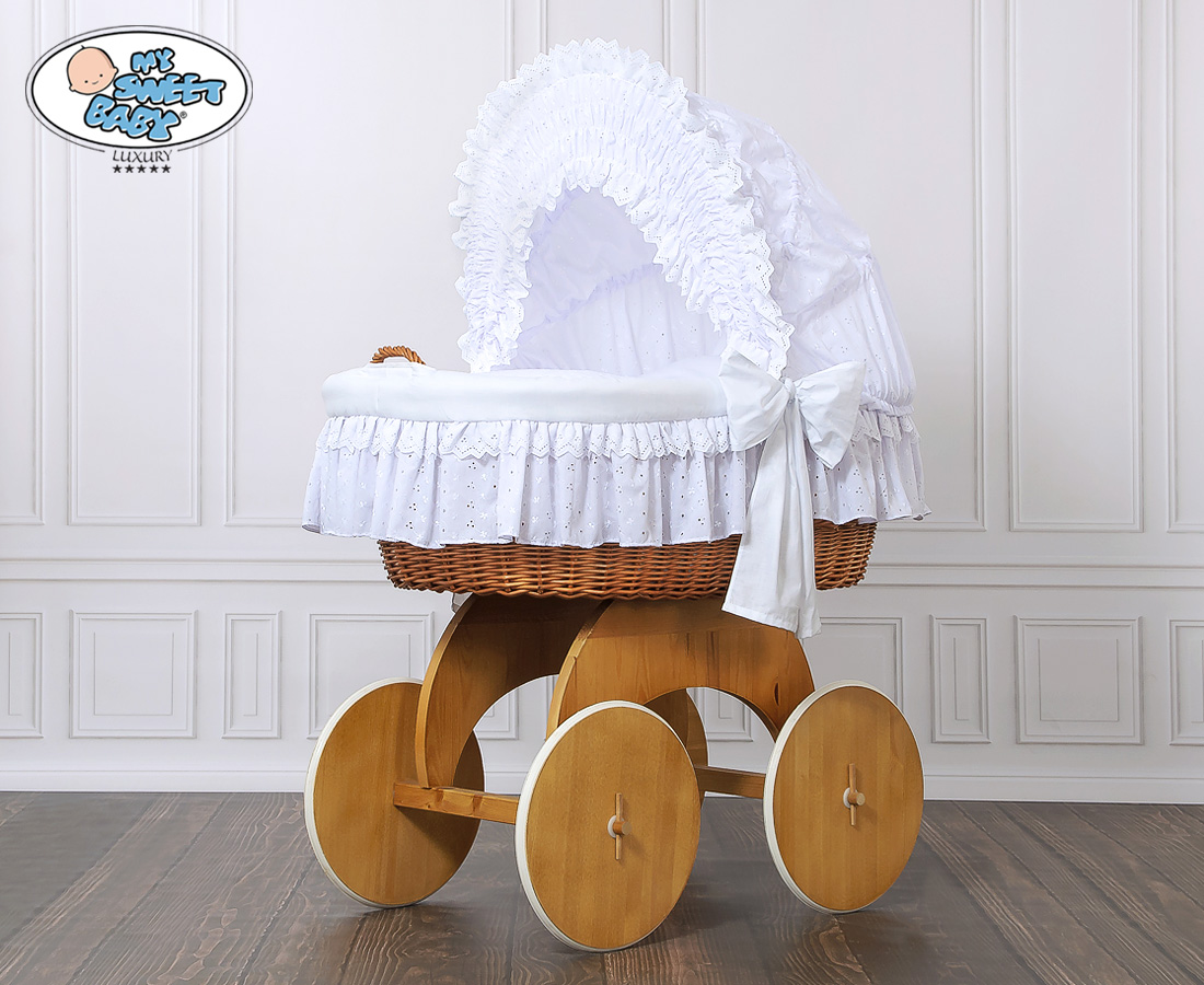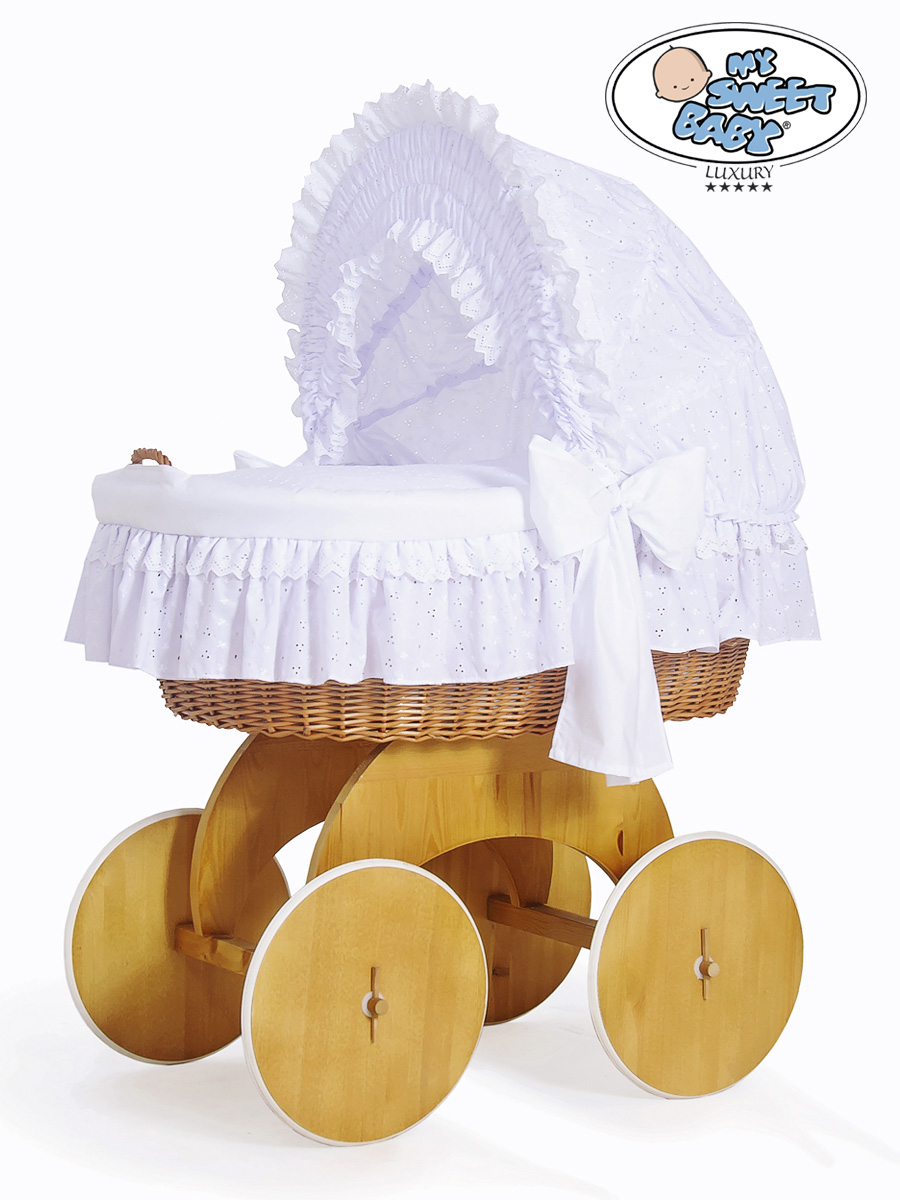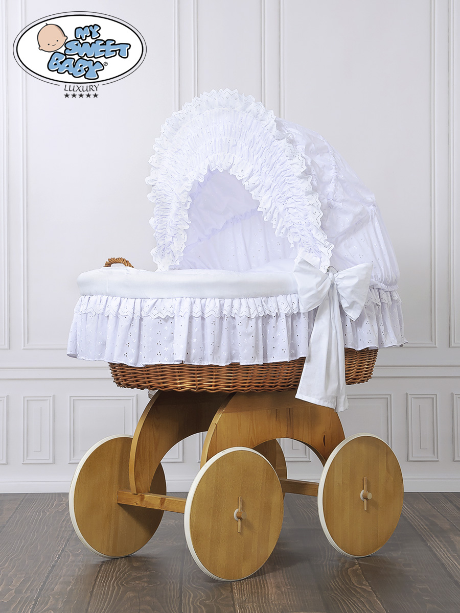 En smuk kurv. Den største babykurv på markedet. En naturlig farve af vidje og træ.