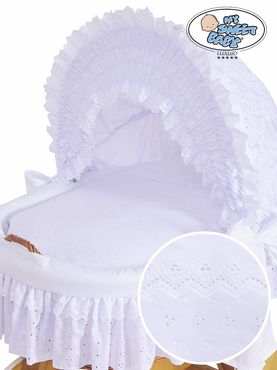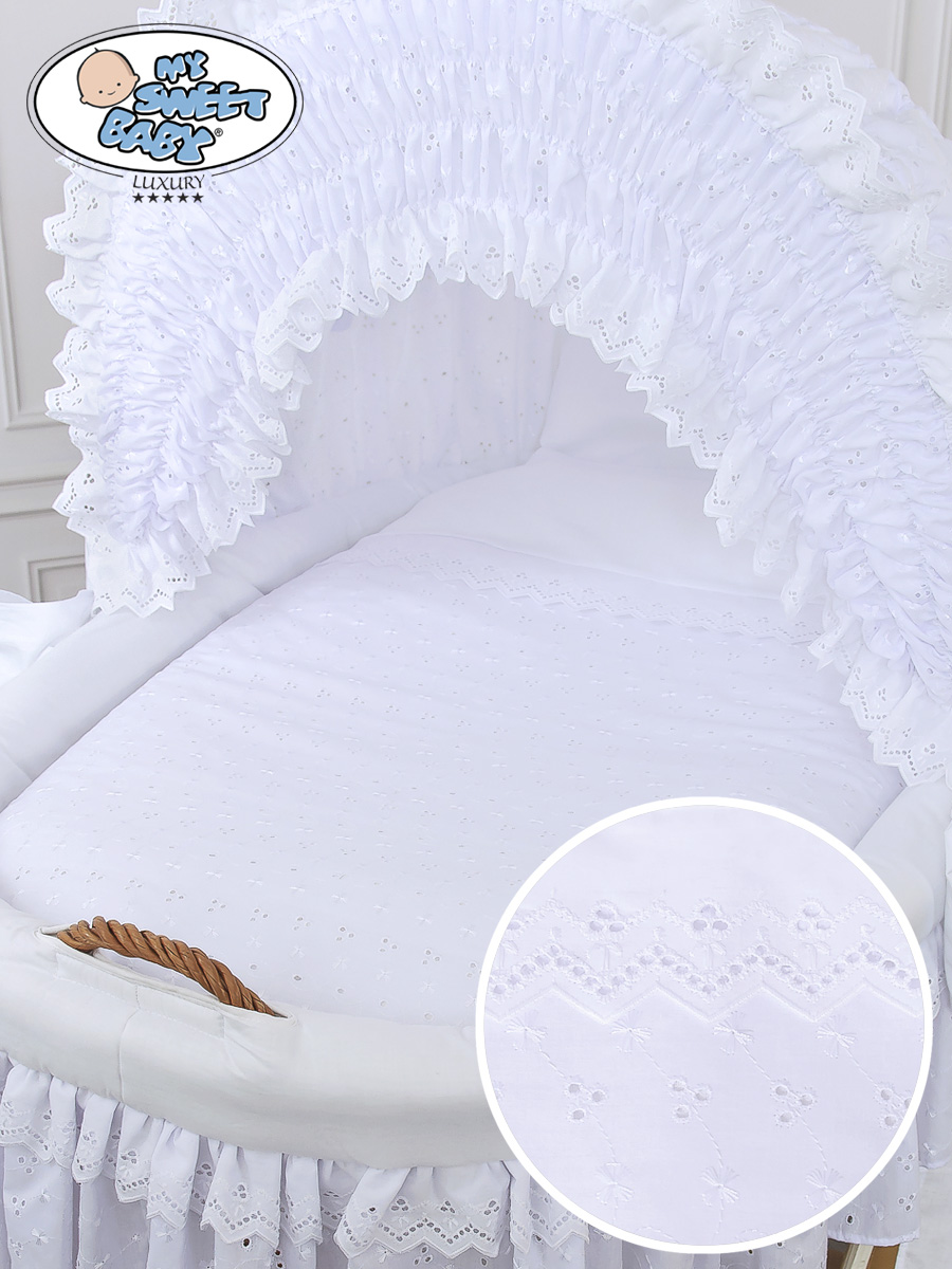 - Hver kurv er foret med et tykt lag af fleece, kantet med bomuld. Det gør kurven til et blødt og komfortabelt rede din baby kan sove i.