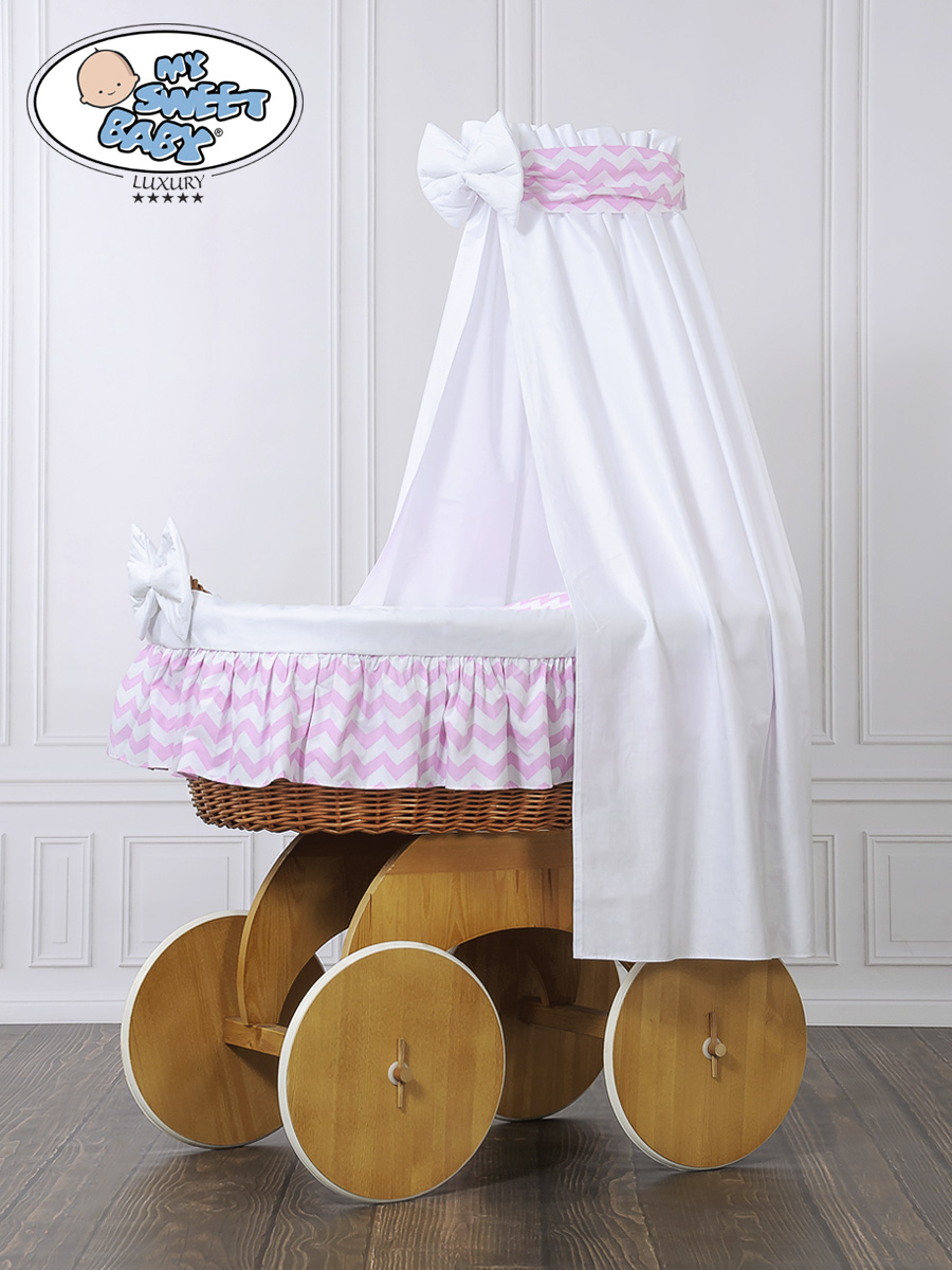 Hjemmeside » Kurvevugge » Babyvugge My Sweet Baby Luxury » Babyvugge med sengehimmel » Babyvugge med sengehimmel » Babykurv på hjul Hannah