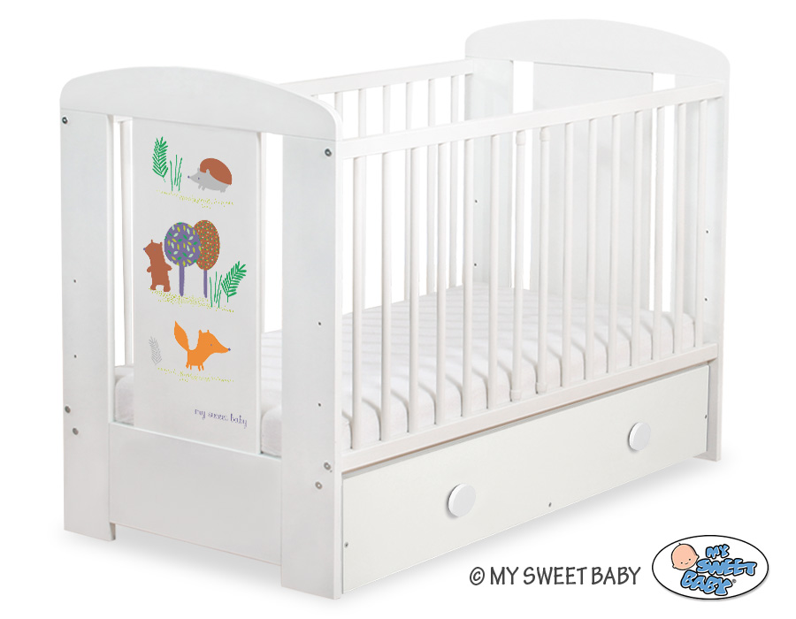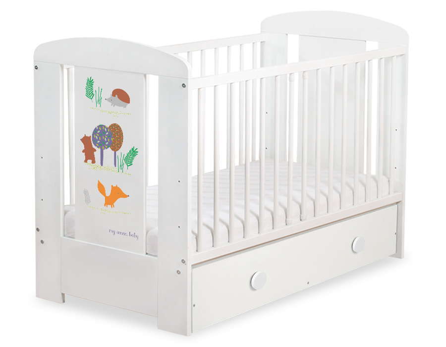 Hjemmeside » Tremmesenge 120x60 cm » Tremmesenge med Skuffe 120x60cm » Børnesenge med tremmer med Skuffe Happy » Babyseng med Skuffe Happy MAXI Skov