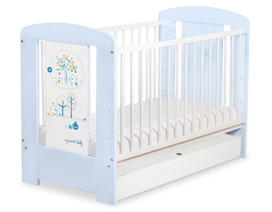 Hjemmeside » Tremmesenge 120x60 cm » Tremmesenge med Skuffe 120x60cm » Børnesenge med tremmer med Skuffe Happy » Babyseng med Skuffe Happy STANDARD