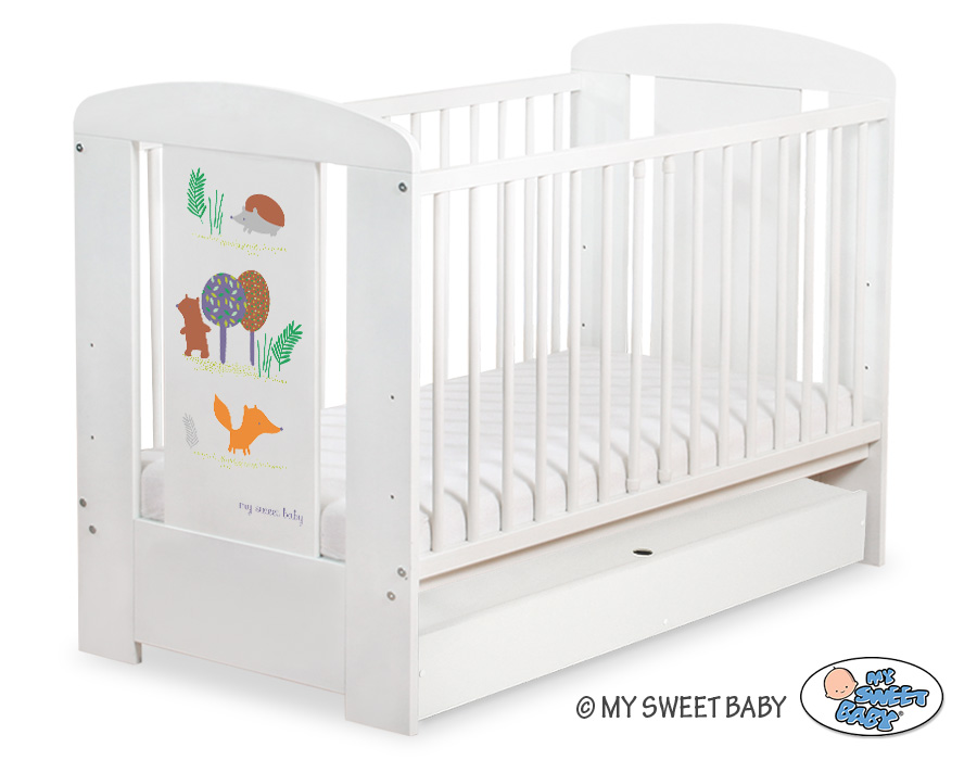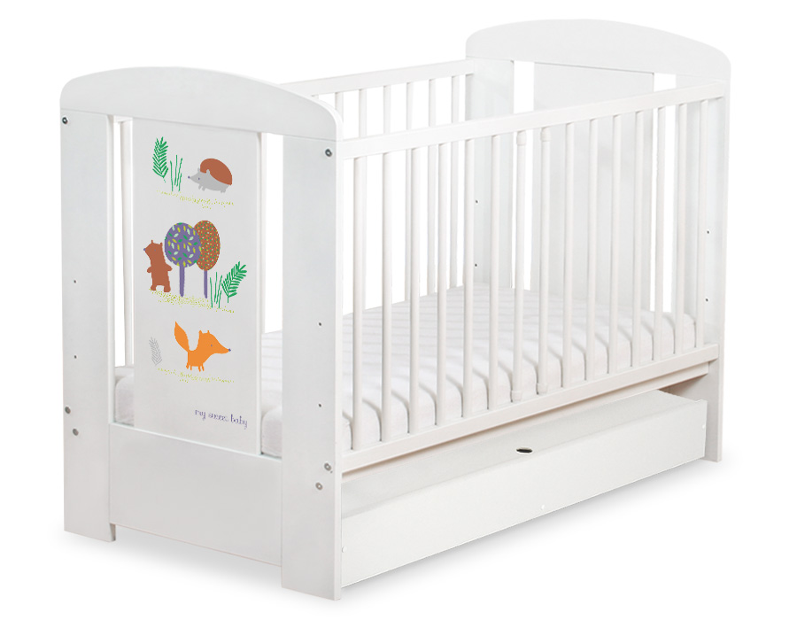 Hjemmeside » Tremmesenge 120x60 cm » Tremmesenge med Skuffe 120x60cm » Børnesenge med tremmer med Skuffe Happy » Babyseng med Skuffe Happy STANDARD Skov