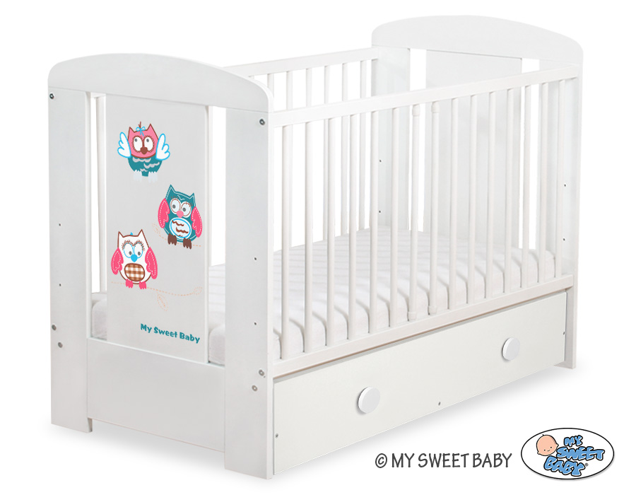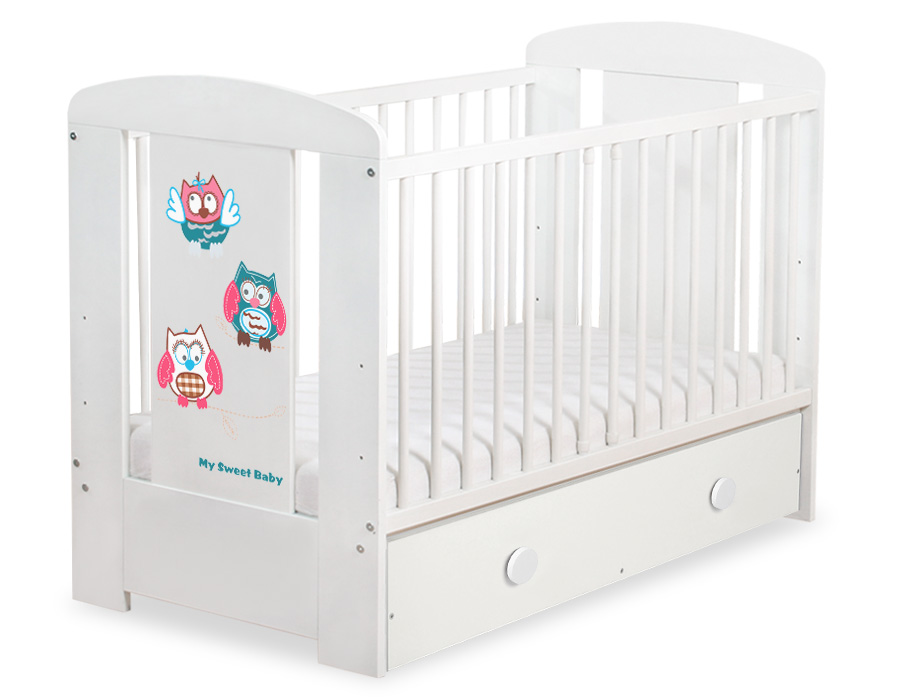 Hjemmeside » Tremmesenge 120x60 cm » Tremmesenge med Skuffe 120x60cm » Babysenge 120x60cm med Skuffe Munter Ugler » Babyseng med Skuffe Munter Ugler MAXI