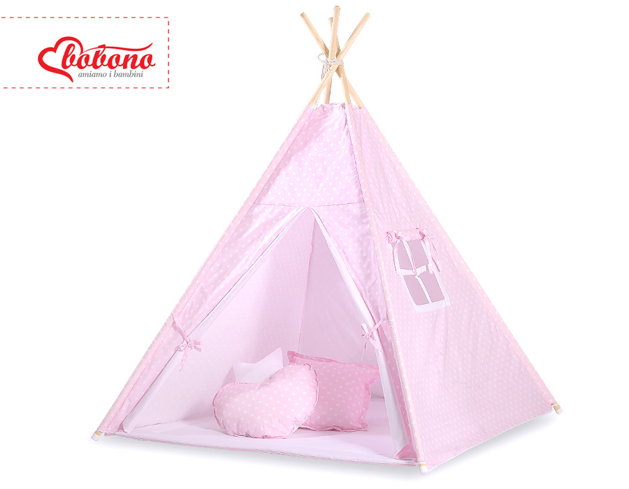 Børne tipi telt dekorative fjer GRATIS! Lyserød Pink Polkaprikker