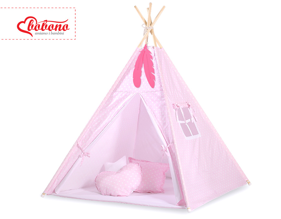 Hjemmeside » Legetøj & Hyggeligt Legetøj » Tipi telte » Børne Tipi Telt » Børne tipi telt dekorative fjer GRATIS! Lyserød Pink Polkaprikker