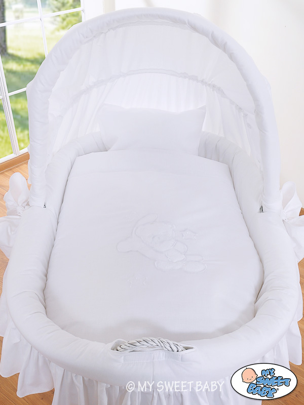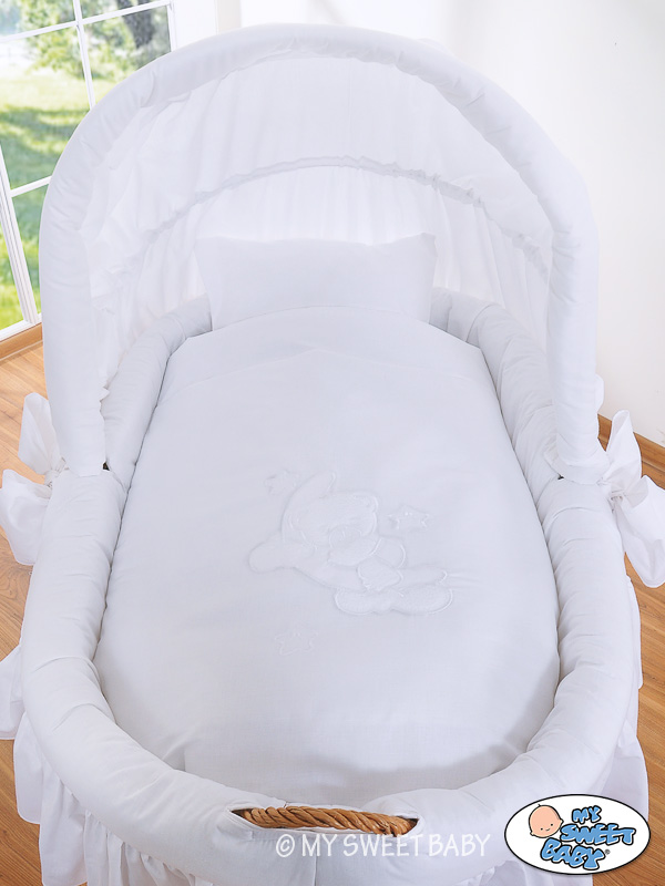 Hjemmeside » Kurvevugge » Flettet vugge med kaleche på hjul » Sengesæt i 2 dele for Babyvugge » Bomuldssæt til moseskurv