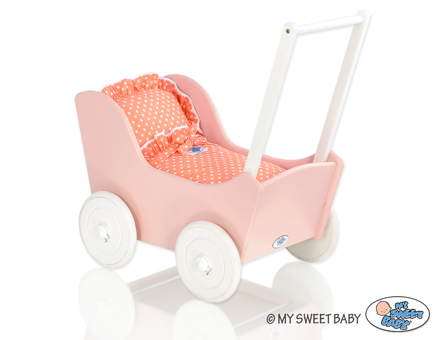 Hjemmeside » Legetøj & Hyggeligt Legetøj » Dukkevogne » Dukkevogn i Træ » Dukkevogn i Træ Pulverrosa » Dukkevogn til den lille piges dukke Hvid Pulverrosa