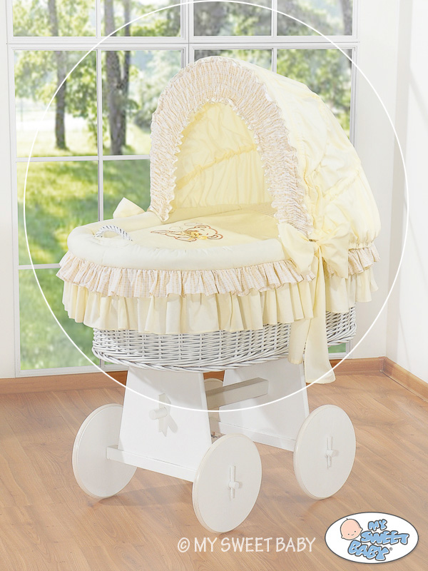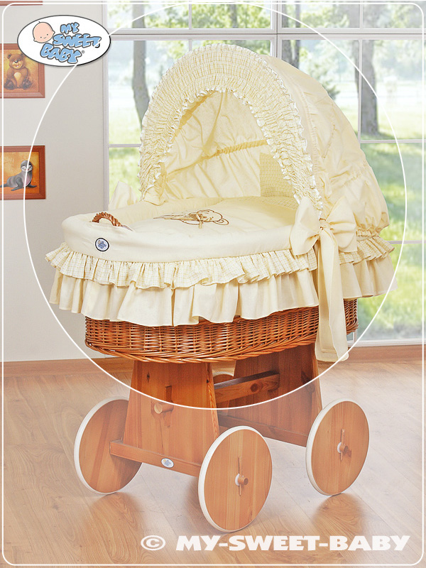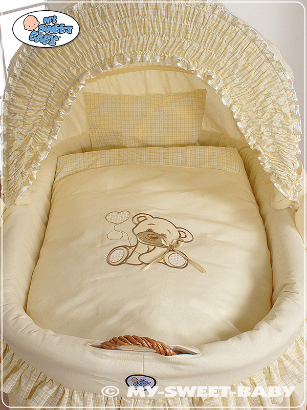 Hjemmeside » Kurvevugge » Flettet vugge med kaleche på hjul » Ekstra vuggesæt 4-delt » Ekstra sengesæt af bomuld til babykurv Beige