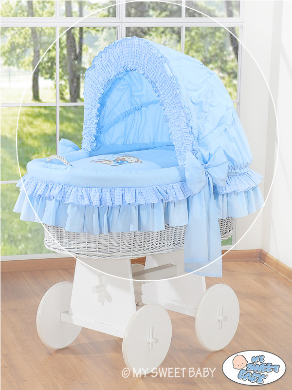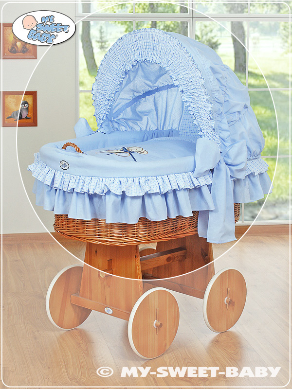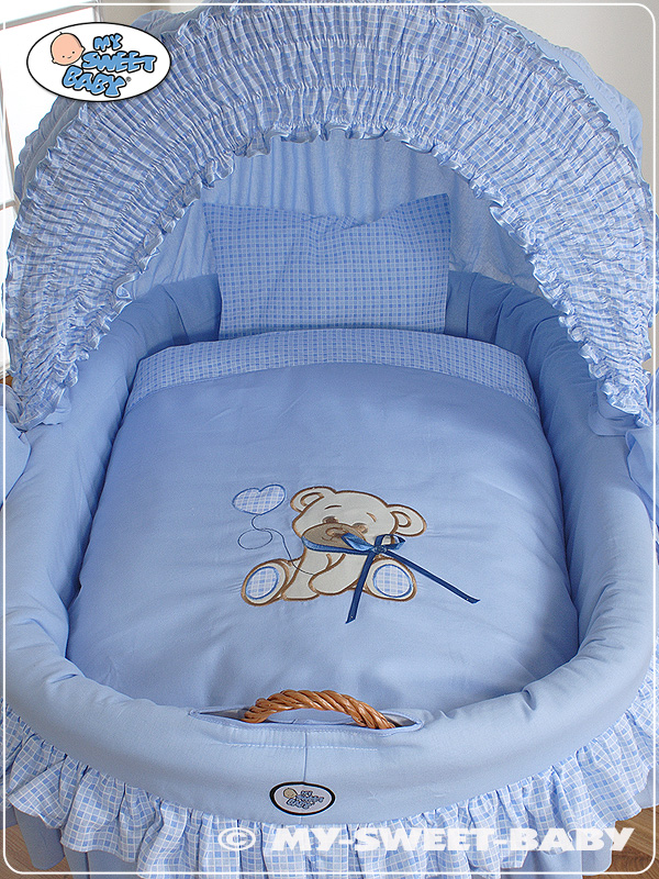 Hjemmeside » Kurvevugge » Flettet vugge med kaleche på hjul » Ekstra vuggesæt 4-delt » Ekstra sengesæt af bomuld til babykurv Blå