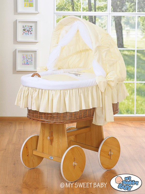 Hjemmeside » Kurvevugge » Flettet vugge med kaleche på hjul » Flettet vugge med kaleche på hjul » Flettet babykurv med kaleche - Bellamy Enfelben
