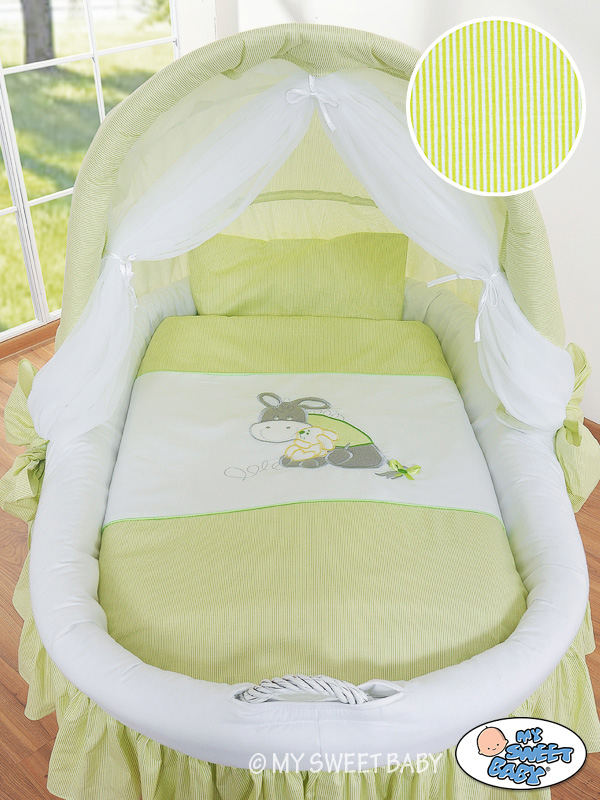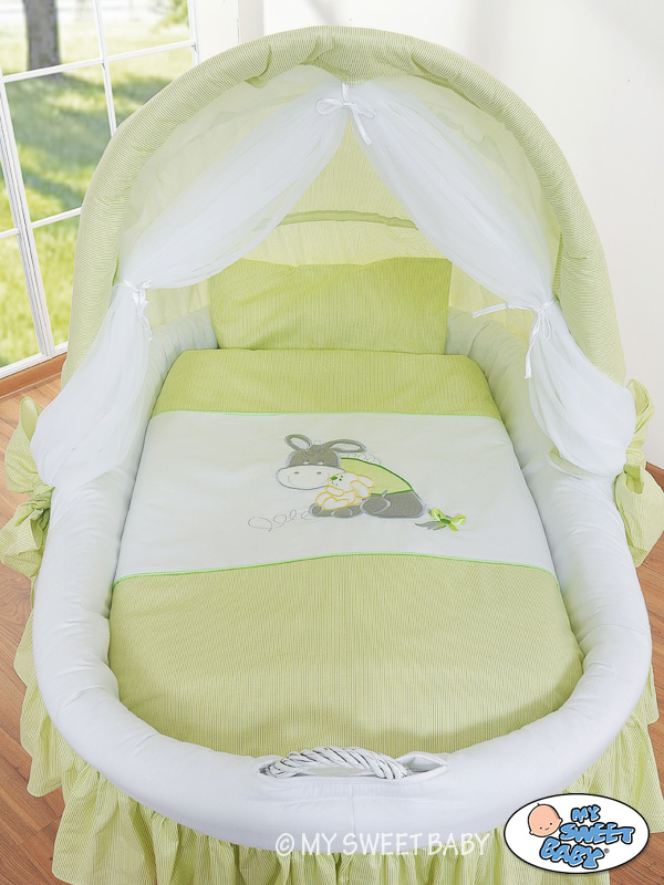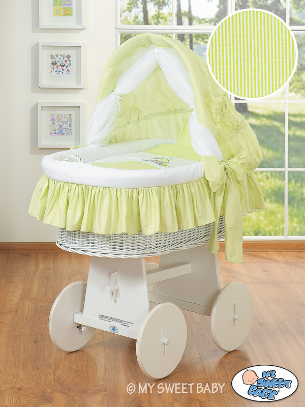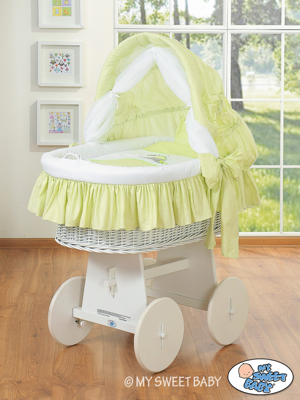 Hjemmeside » Kurvevugge » Flettet vugge med kaleche på hjul » Flettet vugge med kaleche på hjul » Flettet babykurv med kaleche - Bellamy Grøn