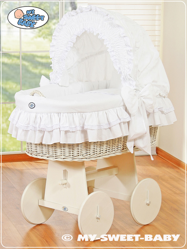 Hjemmeside » Kurvevugge » Flettet vugge med kaleche på hjul » Flettet vugge med kaleche på hjul » Flettet babykurv med kaleche - Bellamy Hvid Angel