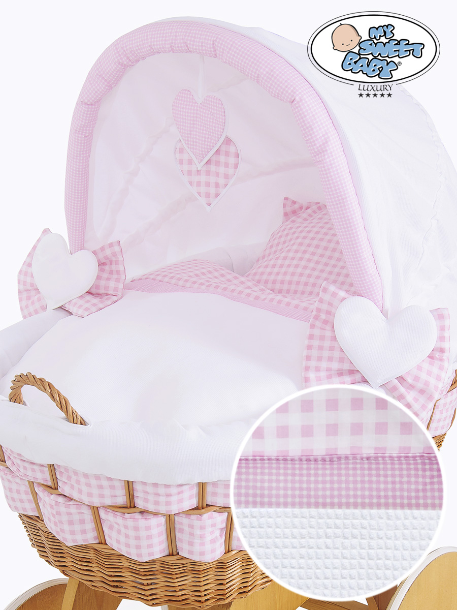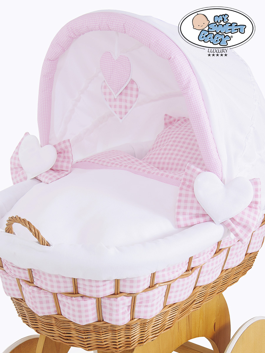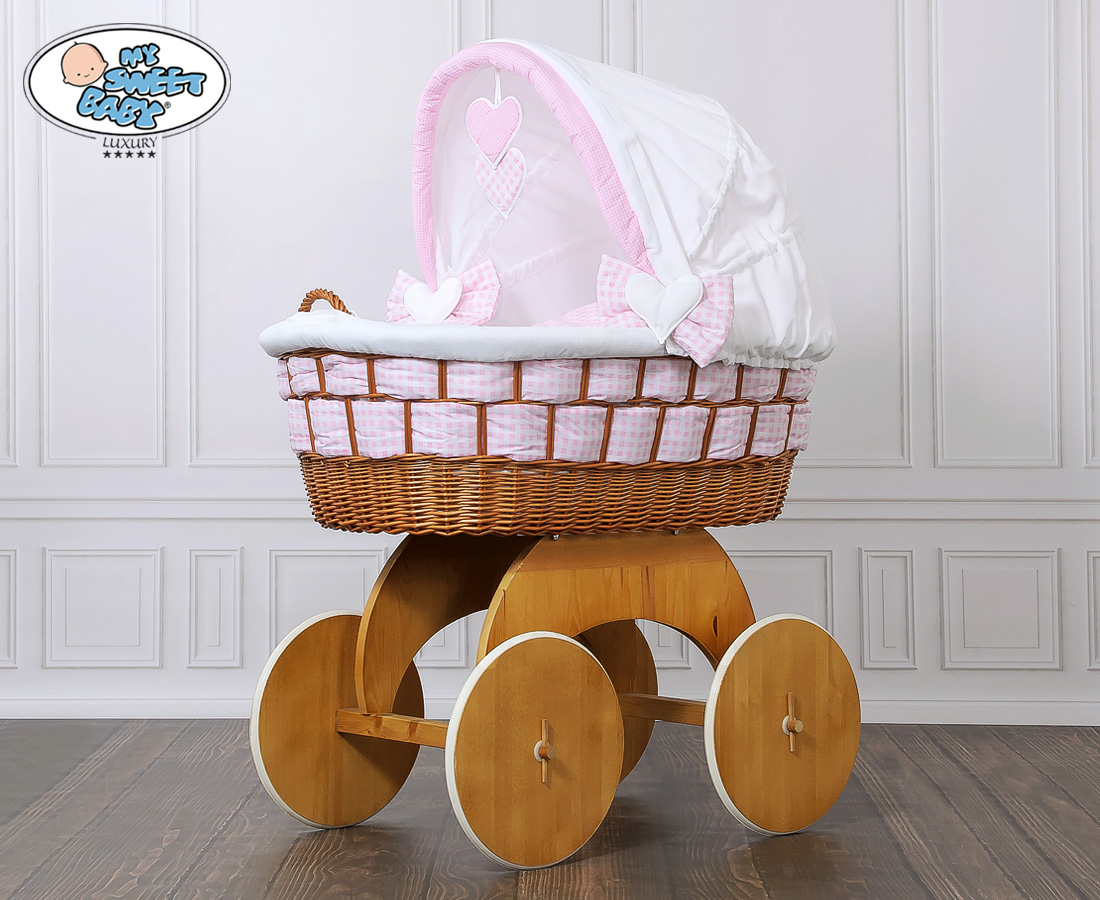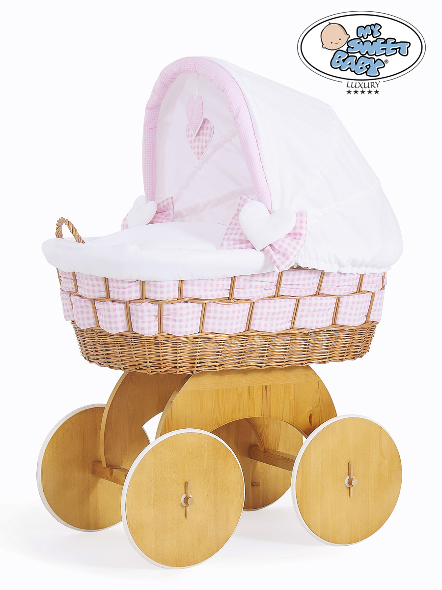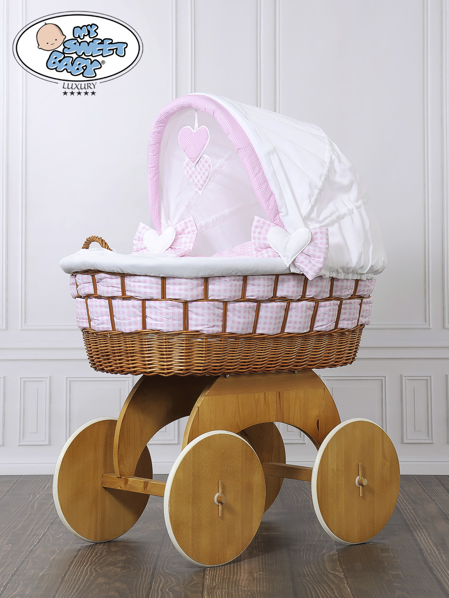 Hjemmeside » Kurvevugge » Babyvugge My Sweet Baby Luxury » Babyvugge med Kaleche » Babyvugge med Kaleche » Flettet babykurv på hjul Isabella