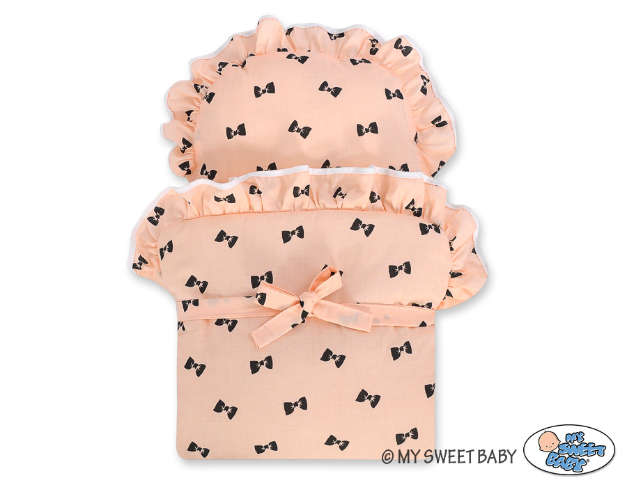 Flettet dukkevogn med sengesæt Sløjfer Pulverrosa
