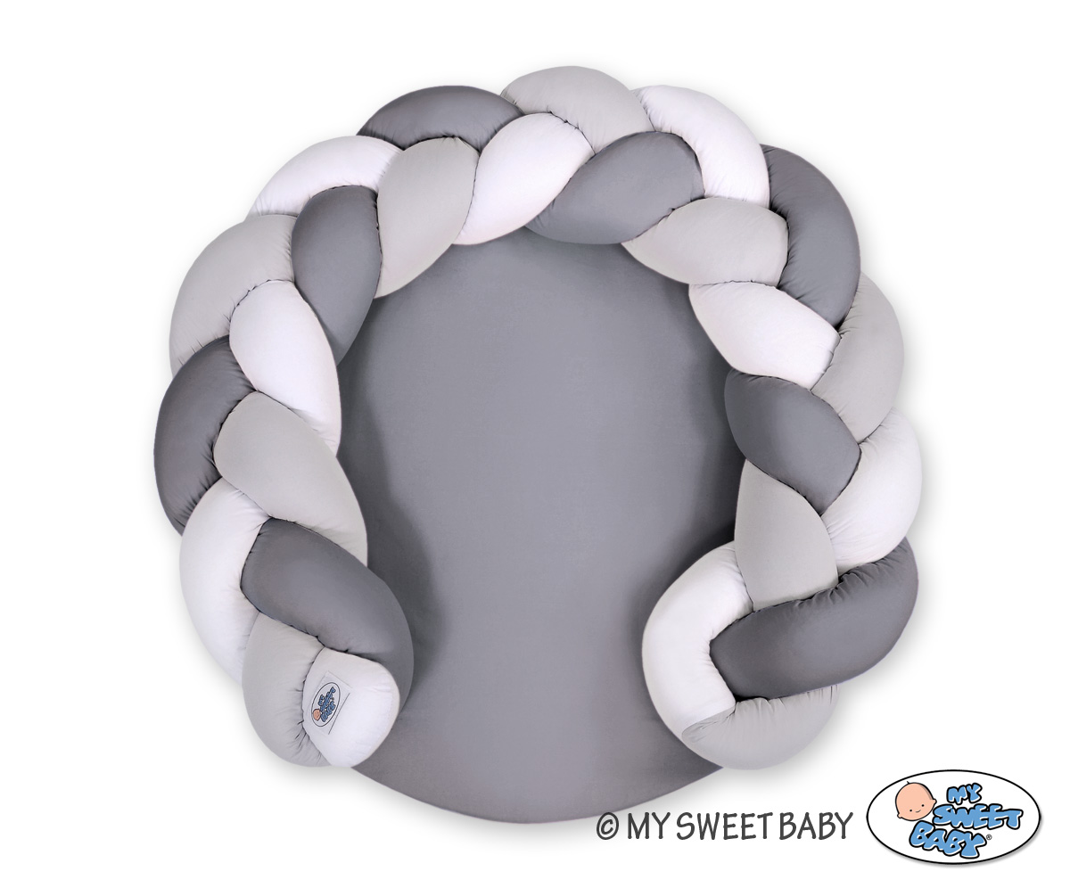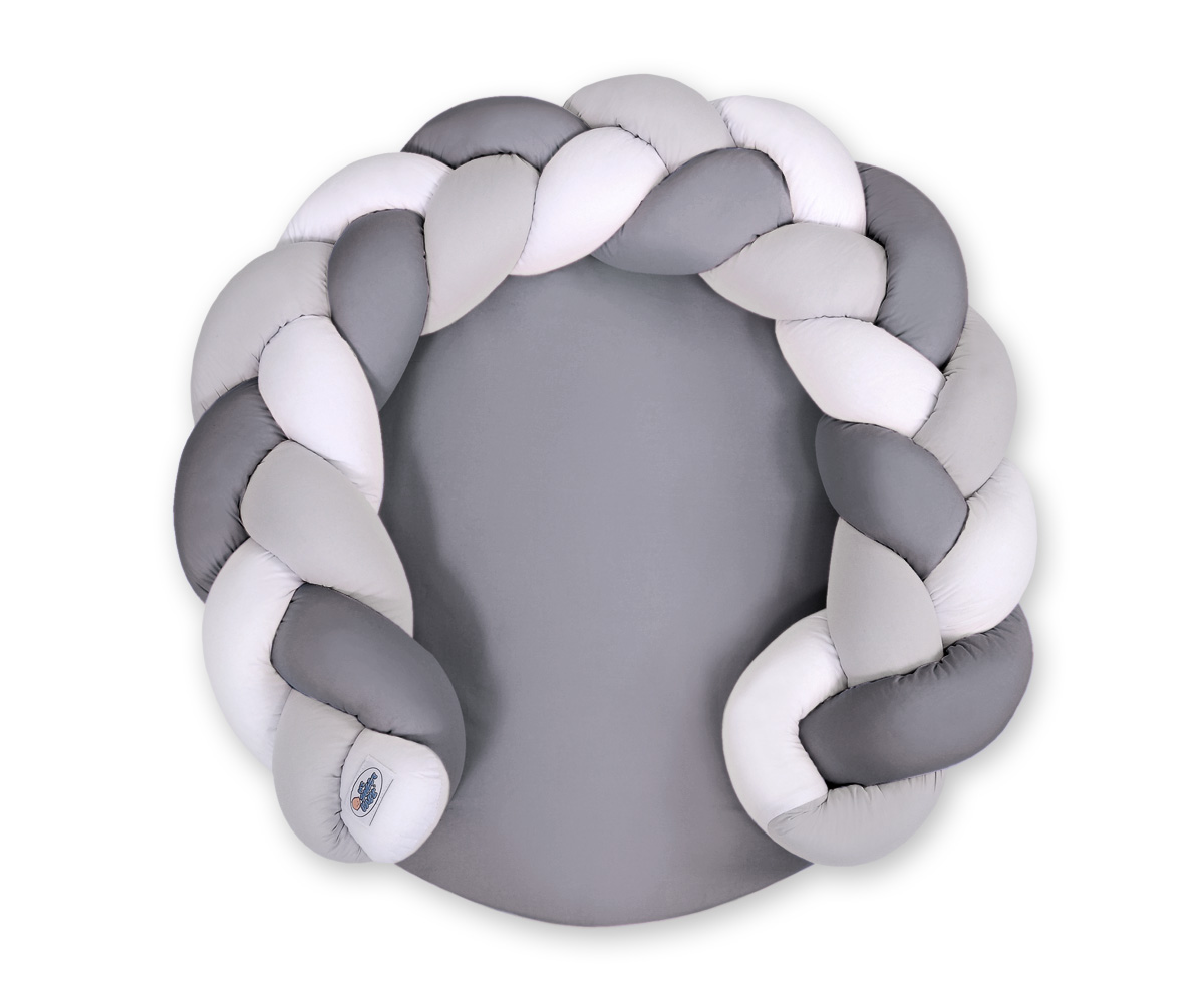 Flettet hestesko-formet babypude/ legemåtte 2 i 1  Hvid Grå Antracit