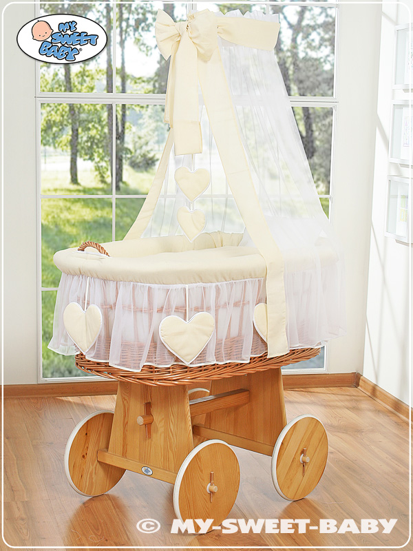 Hjemmeside » Kurvevugge » Flettet vugge på hjul med sengehimmel » Flettet vugge på hjul med sengehimmel » Flettet moseskurv til baby Enfelben Amelie