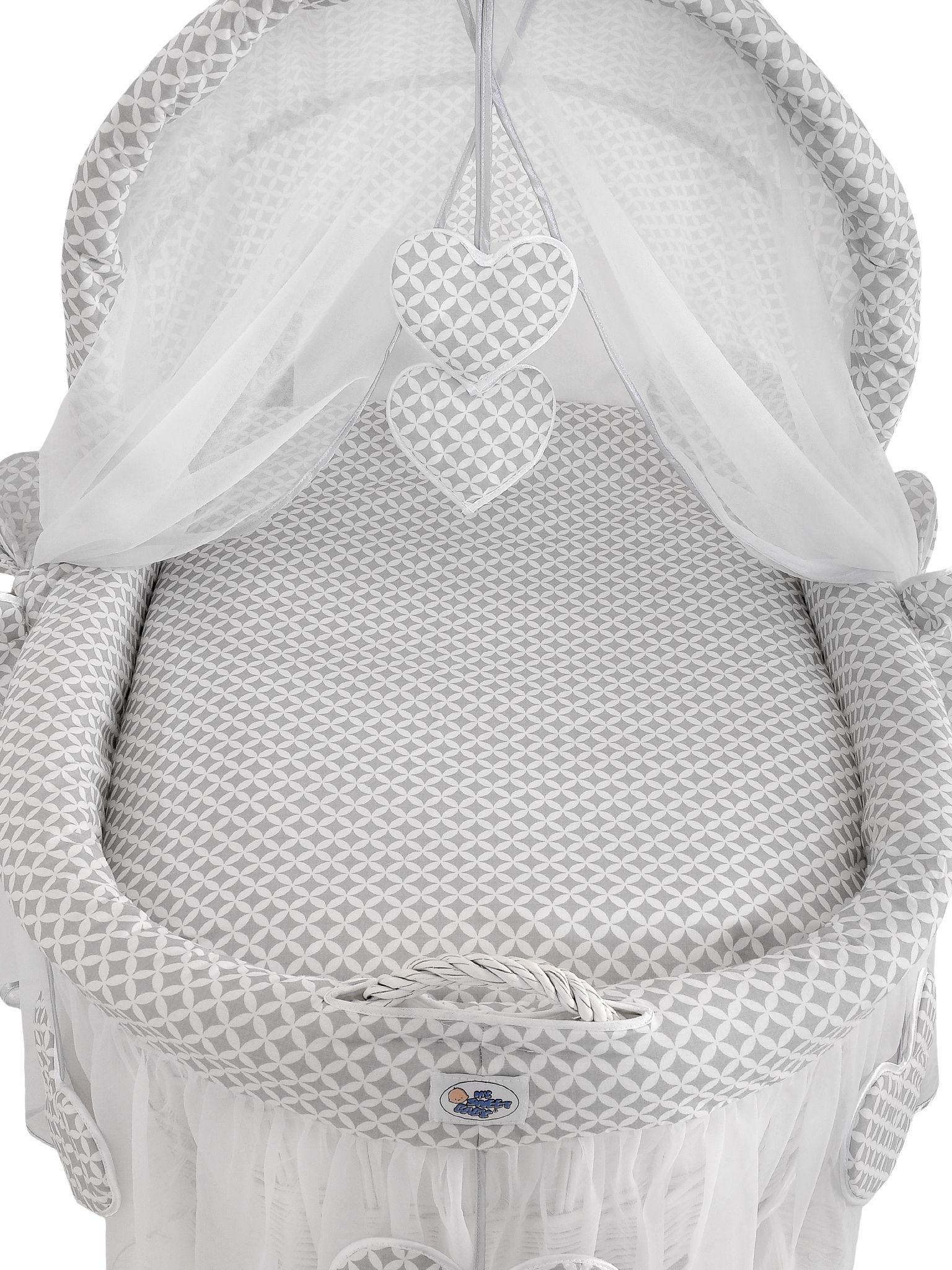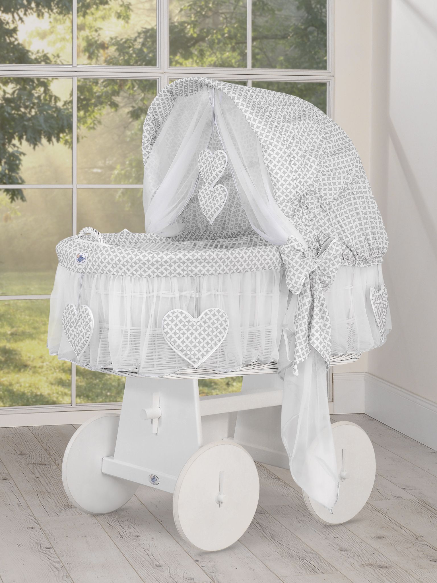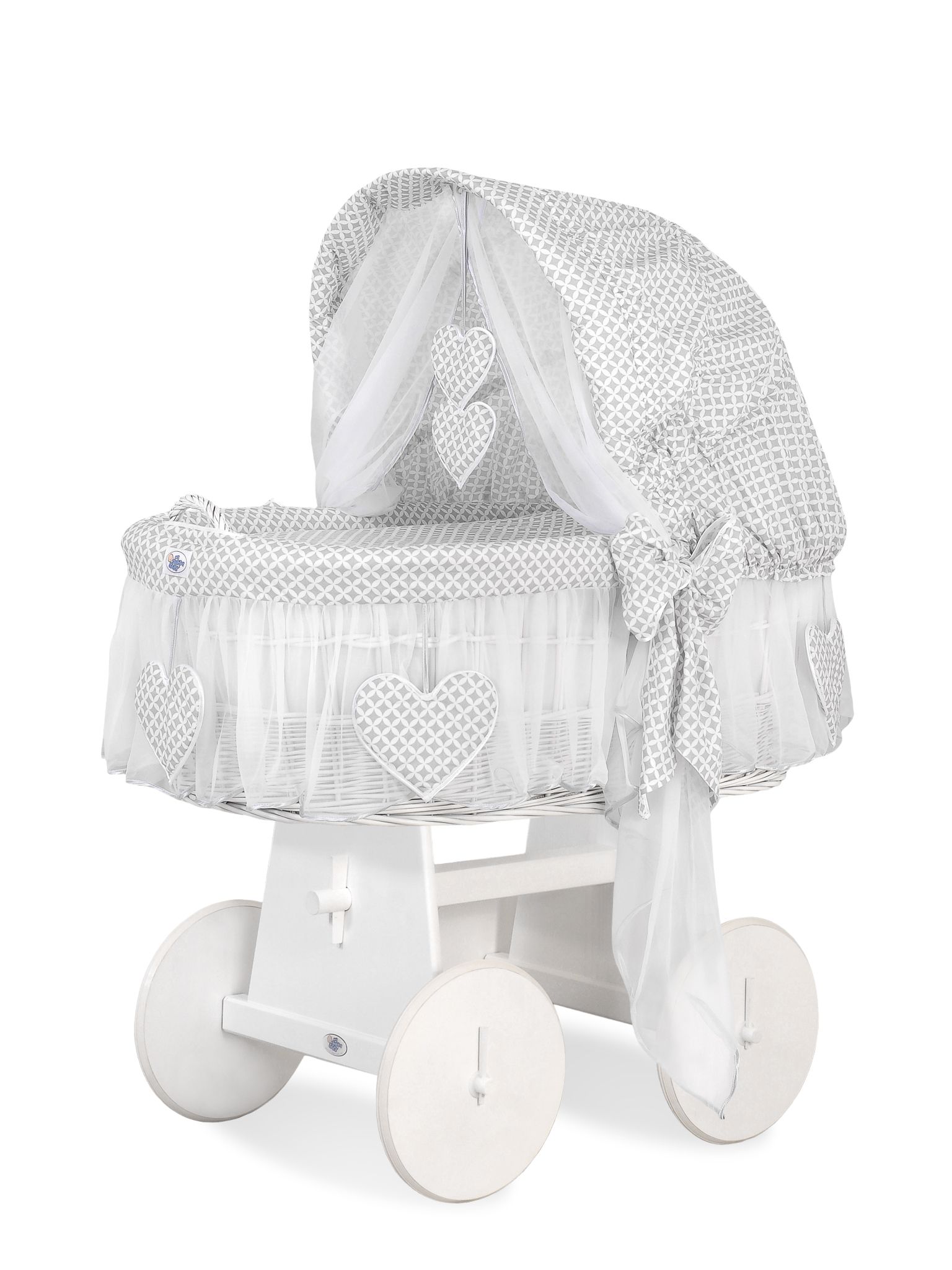 Hjemmeside » Kurvevugge » Flettet vugge med kaleche på hjul » Flettet vugge med kaleche på hjul » Flettet moseskurv til baby Grå Amelie