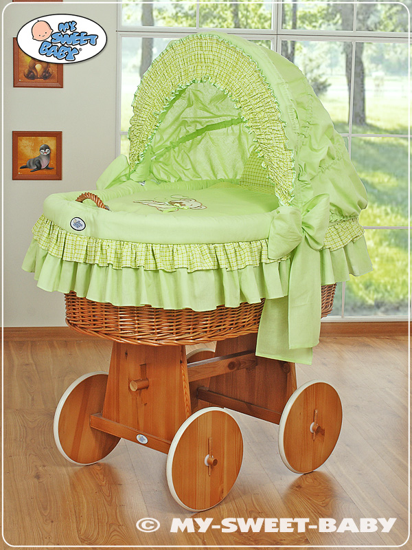 Hjemmeside » Kurvevugge » Flettet vugge med kaleche på hjul » Flettet vugge med kaleche på hjul » Flettet moseskurv til baby Grøn