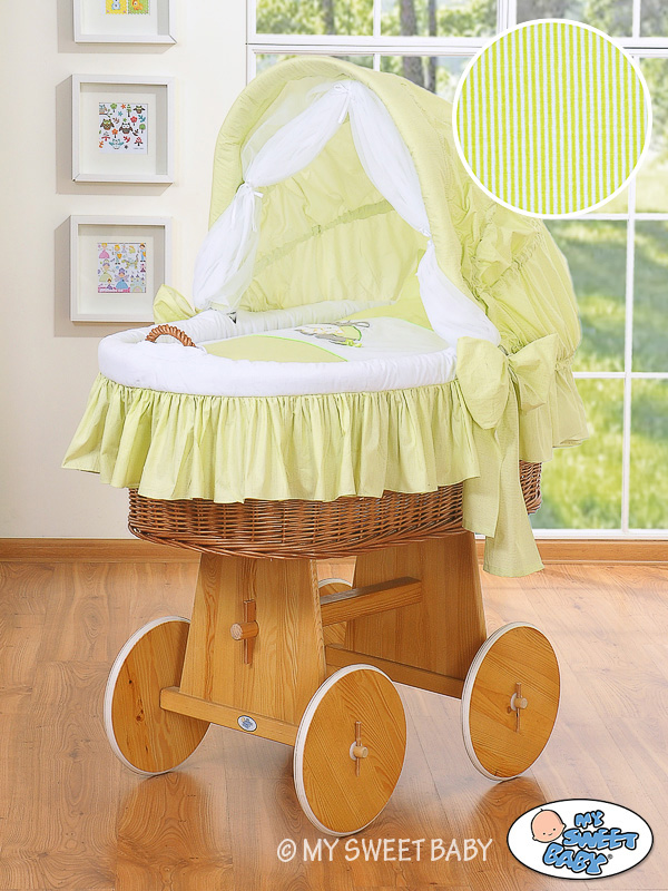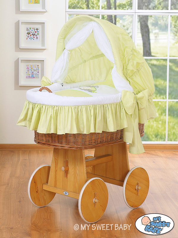 Hjemmeside » Kurvevugge » Flettet vugge med kaleche på hjul » Flettet vugge med kaleche på hjul » Flettet moseskurv til baby Grøn