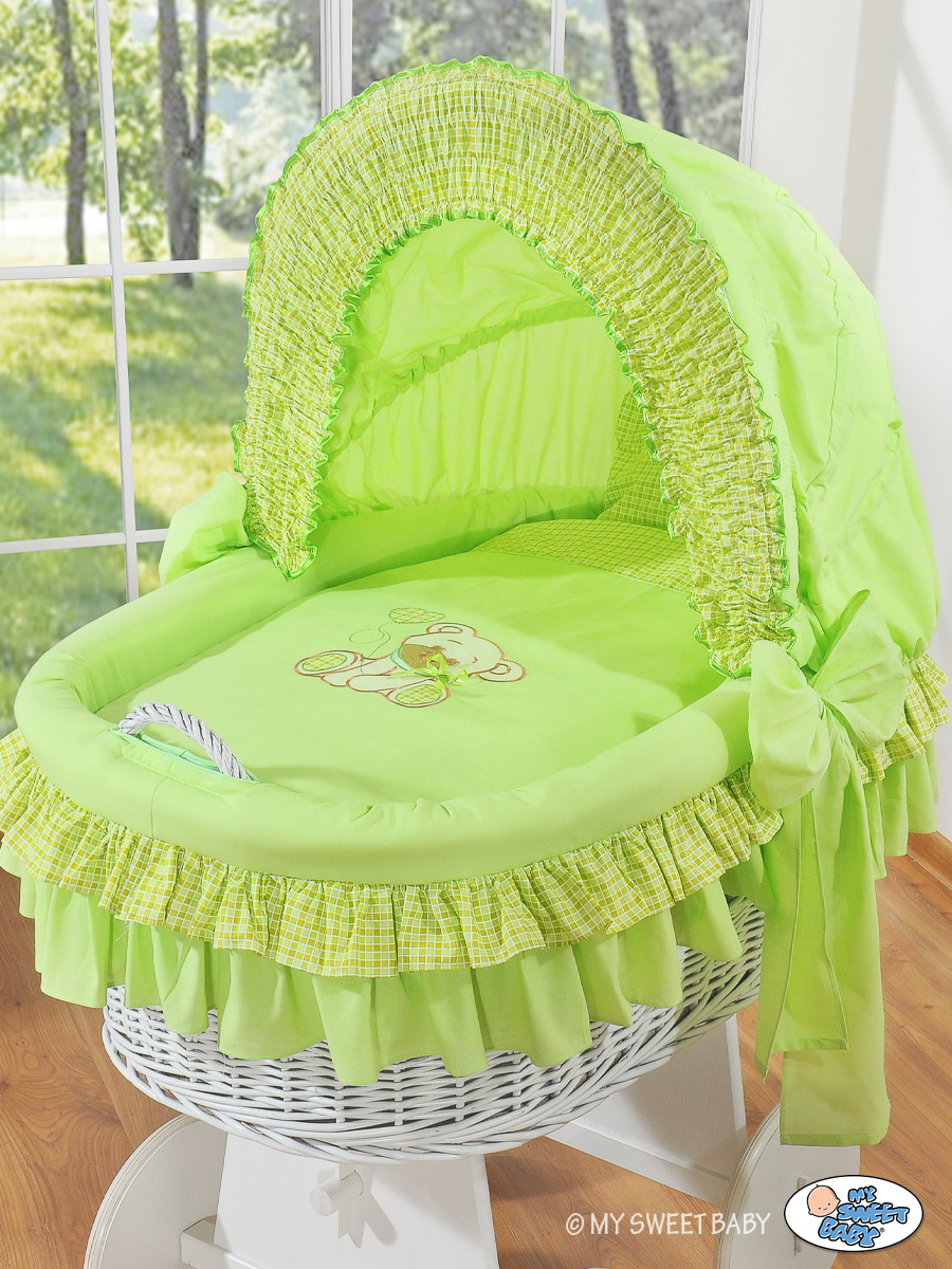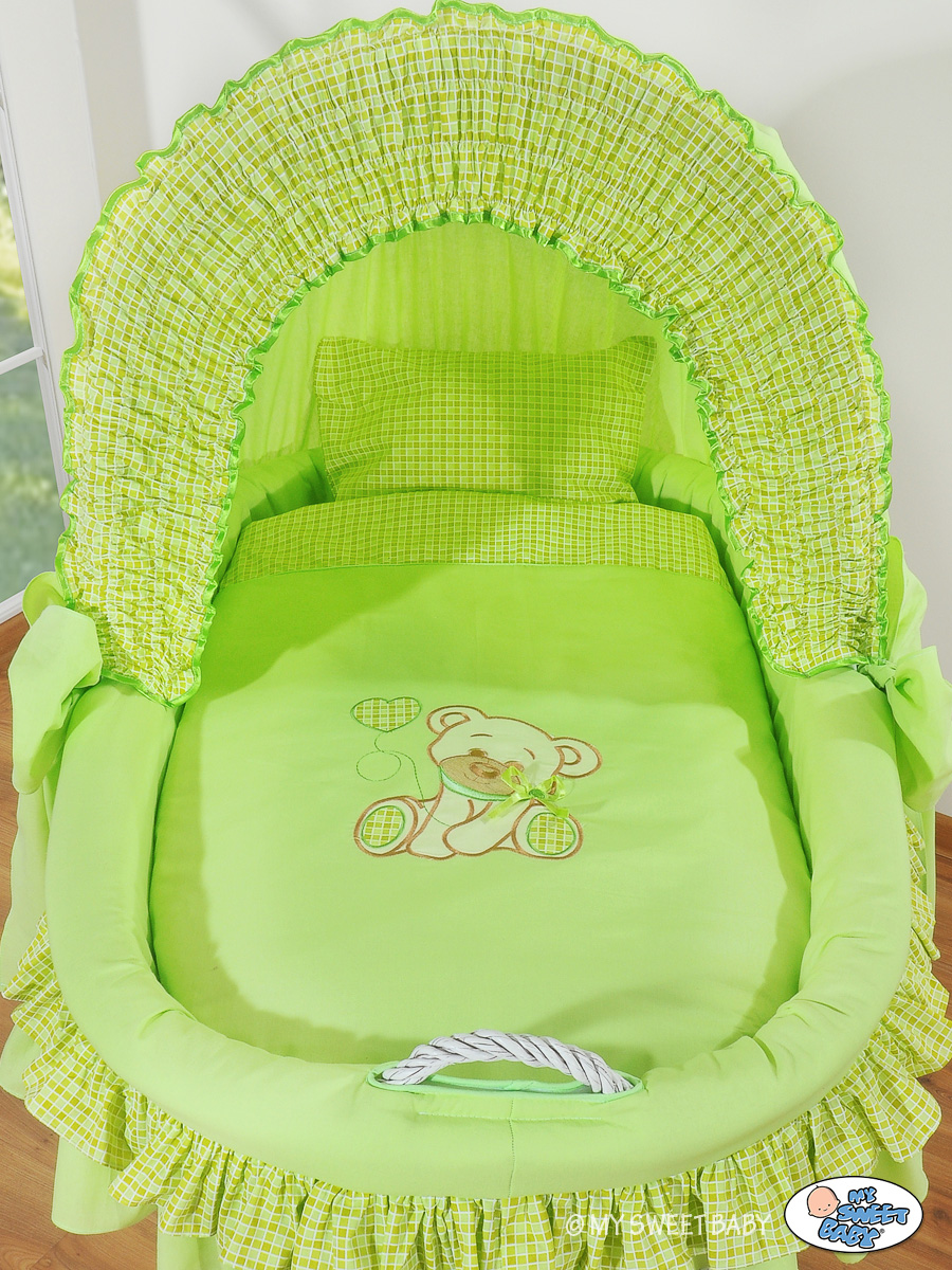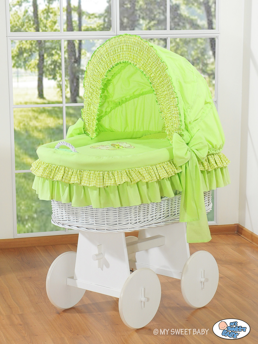 Hjemmeside » Kurvevugge » Flettet vugge med kaleche på hjul » Flettet vugge med kaleche på hjul » Flettet moseskurv til baby Grøn