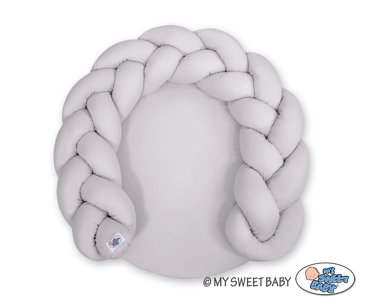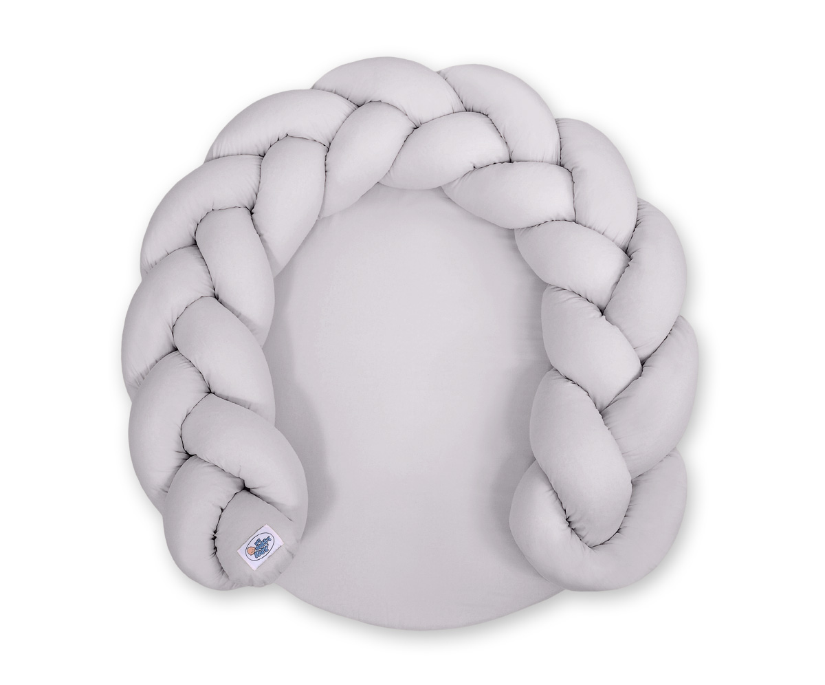 Hjemmeside » Flettet Kollektion » Hestesko-formet flettet babypude » Flettet sengerand med legemåtte 2 i 1 Grå