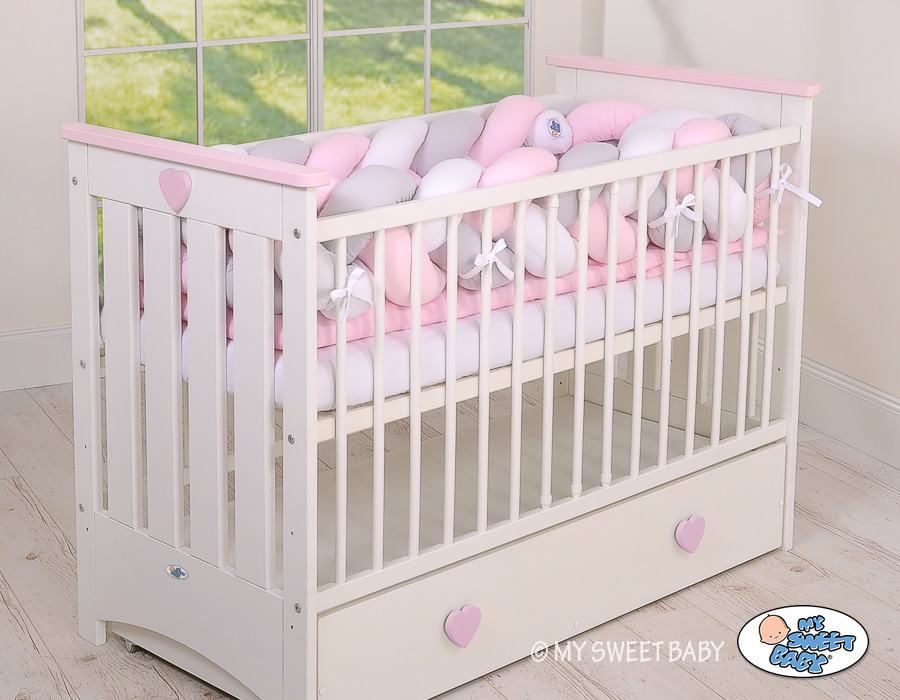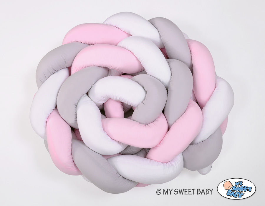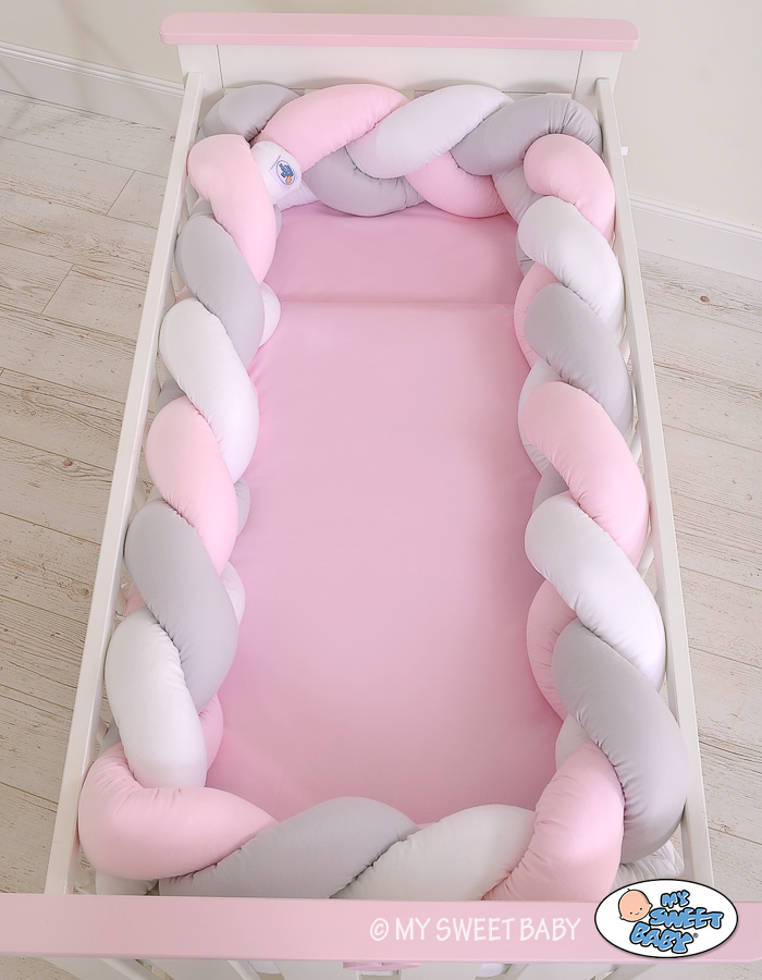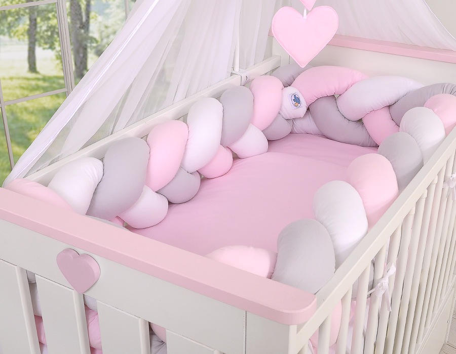Smuk, blødt flettet sengerand til tremmeseng lavet af 100% bomuld. Kan fastgøres til tremmerne.