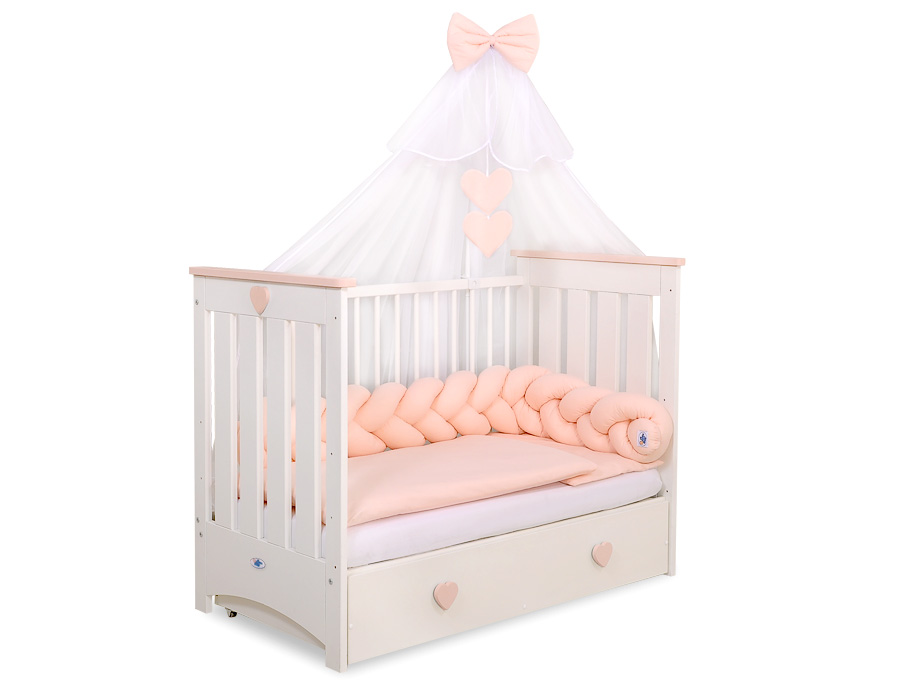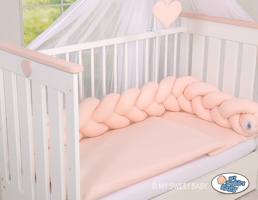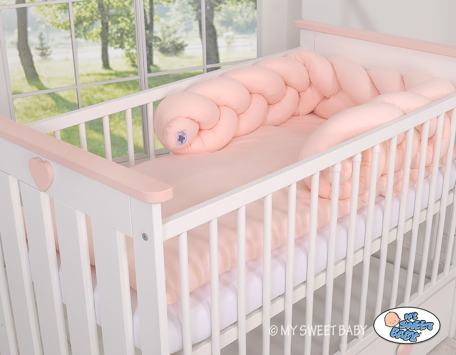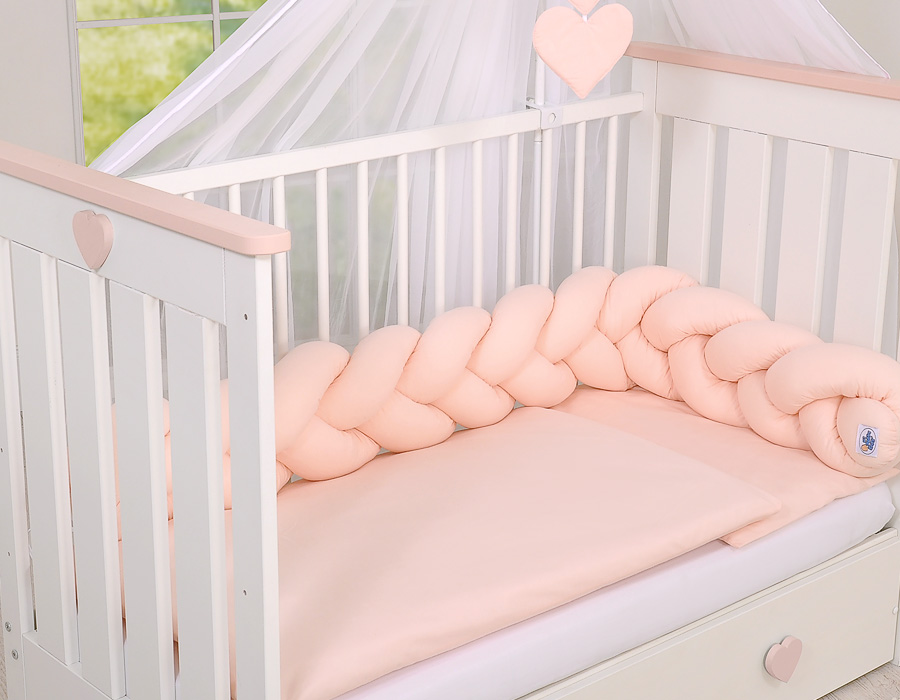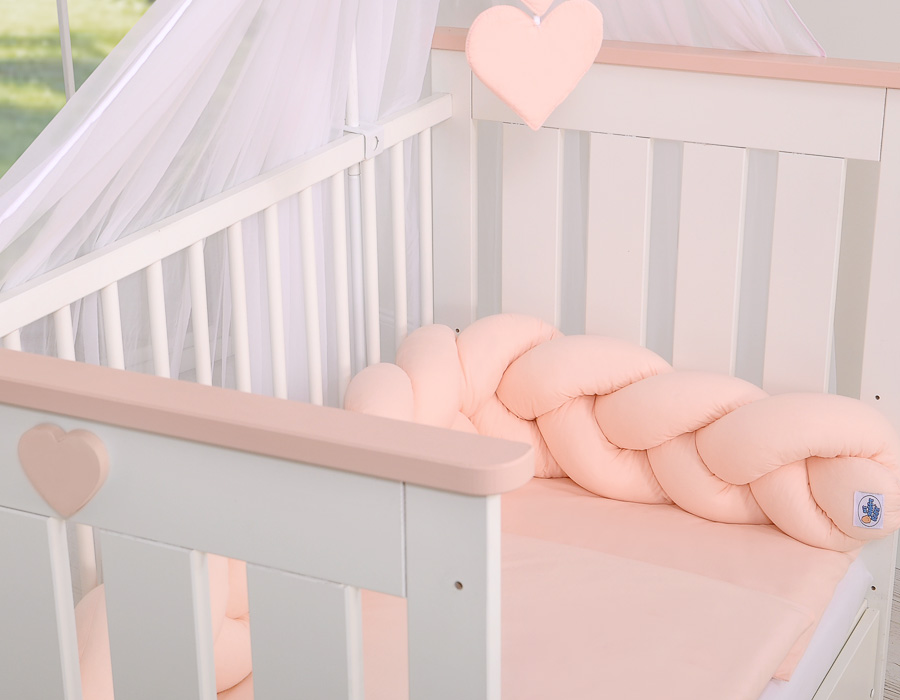 Sengeranden beskytter din babys hænder og fødder fra at sidde fast mellem tremmerne, så vel som beskytter babyens hoved fra at slå mod væggene i sengen. Med de inkluderede bomuldssløjfer kan randen hæftes til tremmerne.