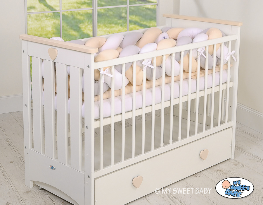 Sengeranden beskytter din babys hænder og fødder fra at sidde fast mellem tremmerne, så vel som beskyttet babyens hoved og krop fra at støde mod væggene i sengen. Med de inkluderede bomuldssløjfer kan randen fastgøres til tremmerne.