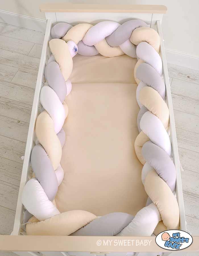 Smuk, blødt flettet sengerand til tremmeseng lavet af 100% bomuld. Kan fastgøres til tremmerne.