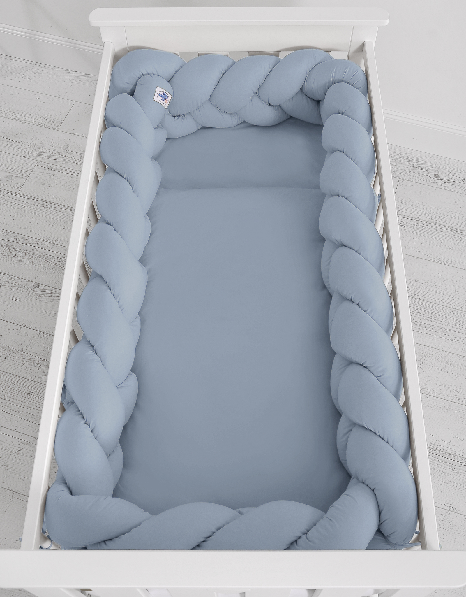 Smuk, blødt flettet sengerand til tremmeseng lavet af 100% bomuld. Kan fastgøres til tremmerne.