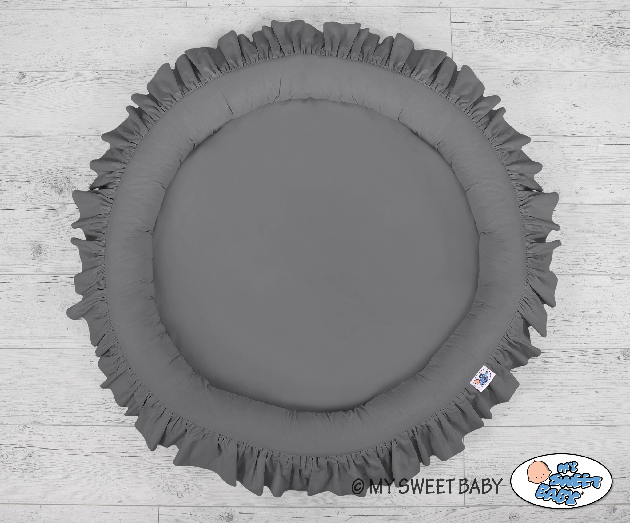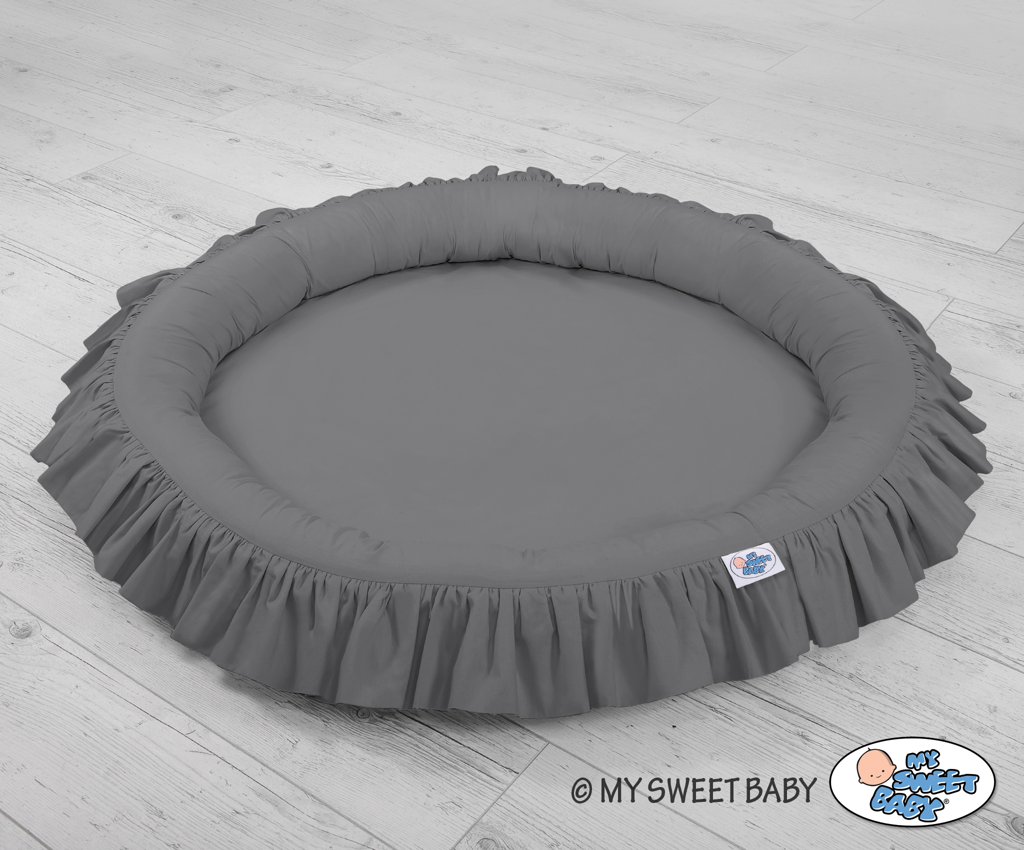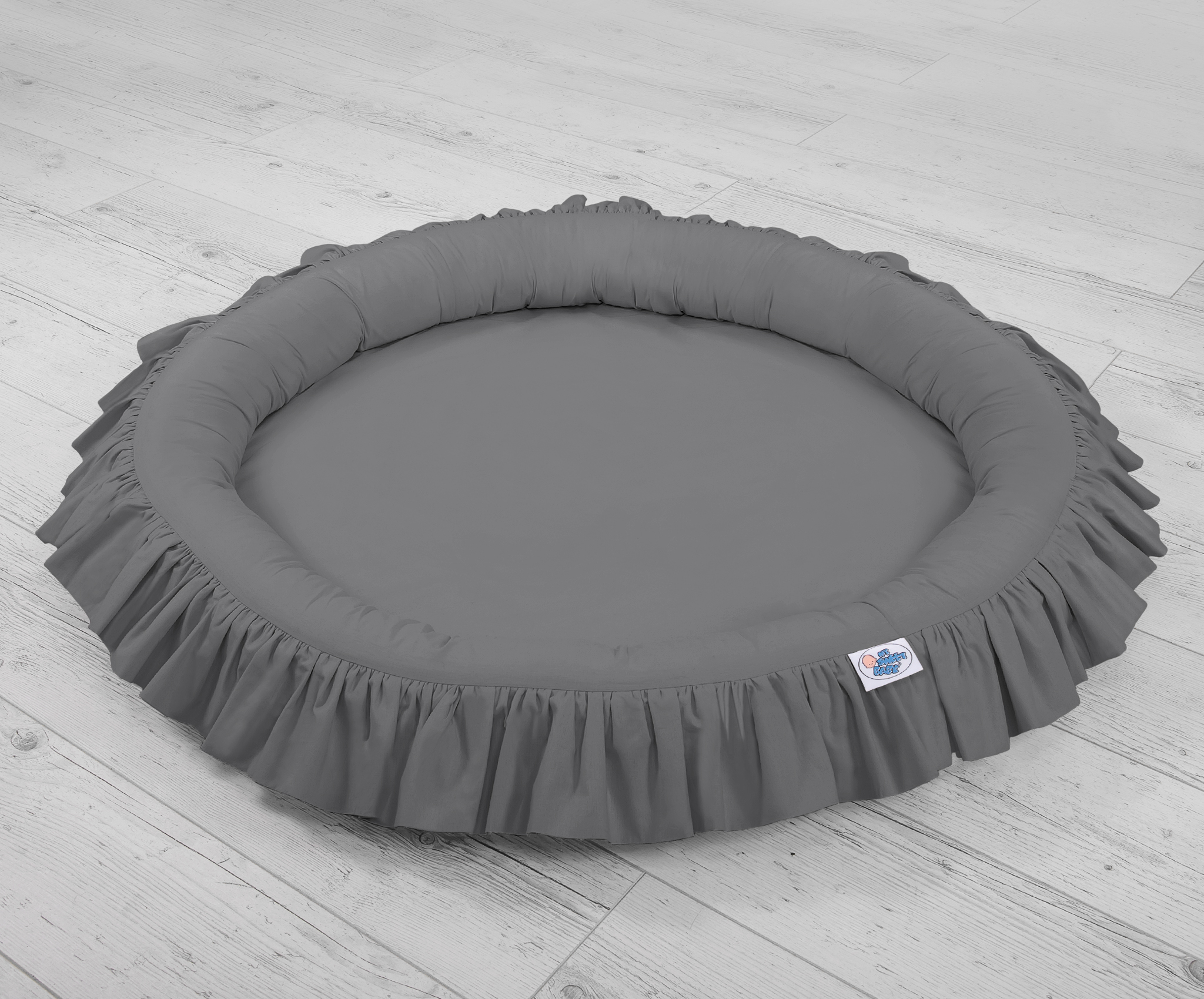 Hjemmeside » Flettet Kollektion » Babynest med flæsekant » Højt legetæppe med flæsekant Antracit
