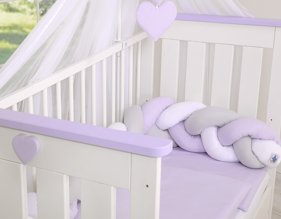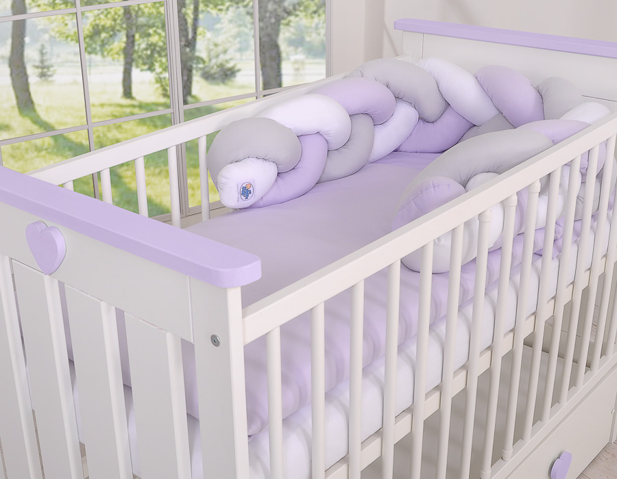 Sengeranden beskytter din babys hænder og fødder fra at sidde fast mellem tremmerne, så vel som beskytter babyens hoved fra at slå mod væggene i sengen. Med de inkluderede bomuldssløjfer kan randen hæftes til tremmerne.