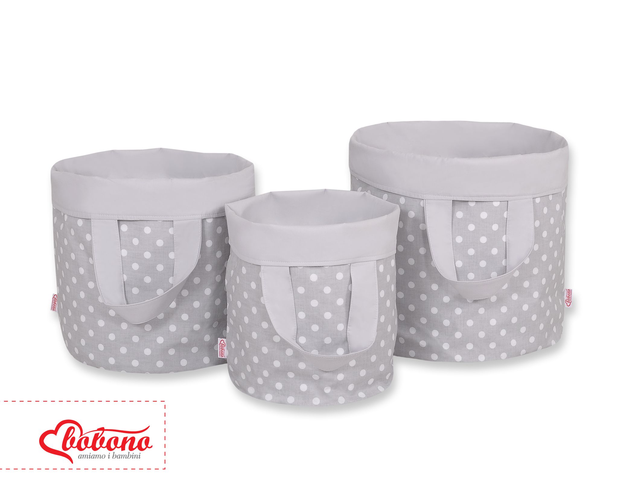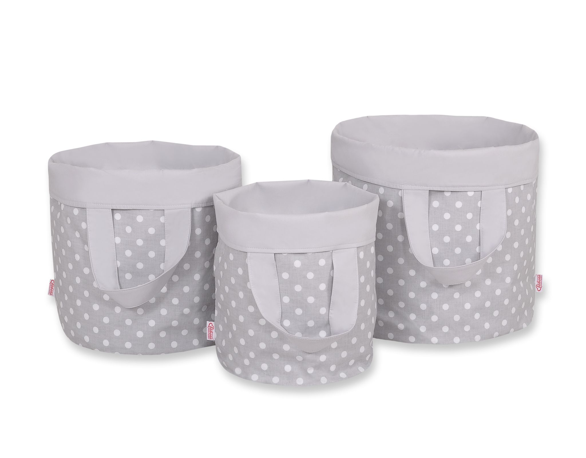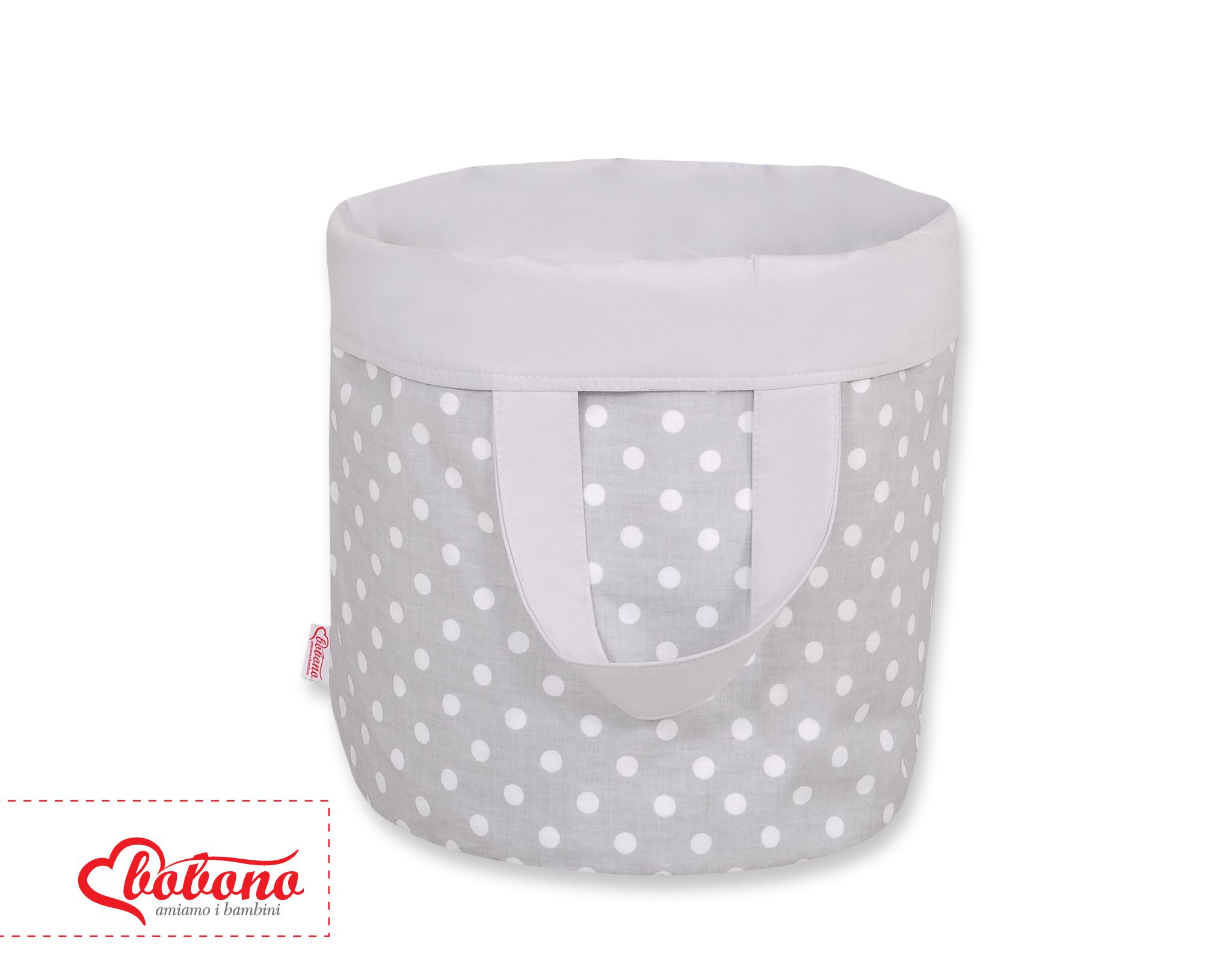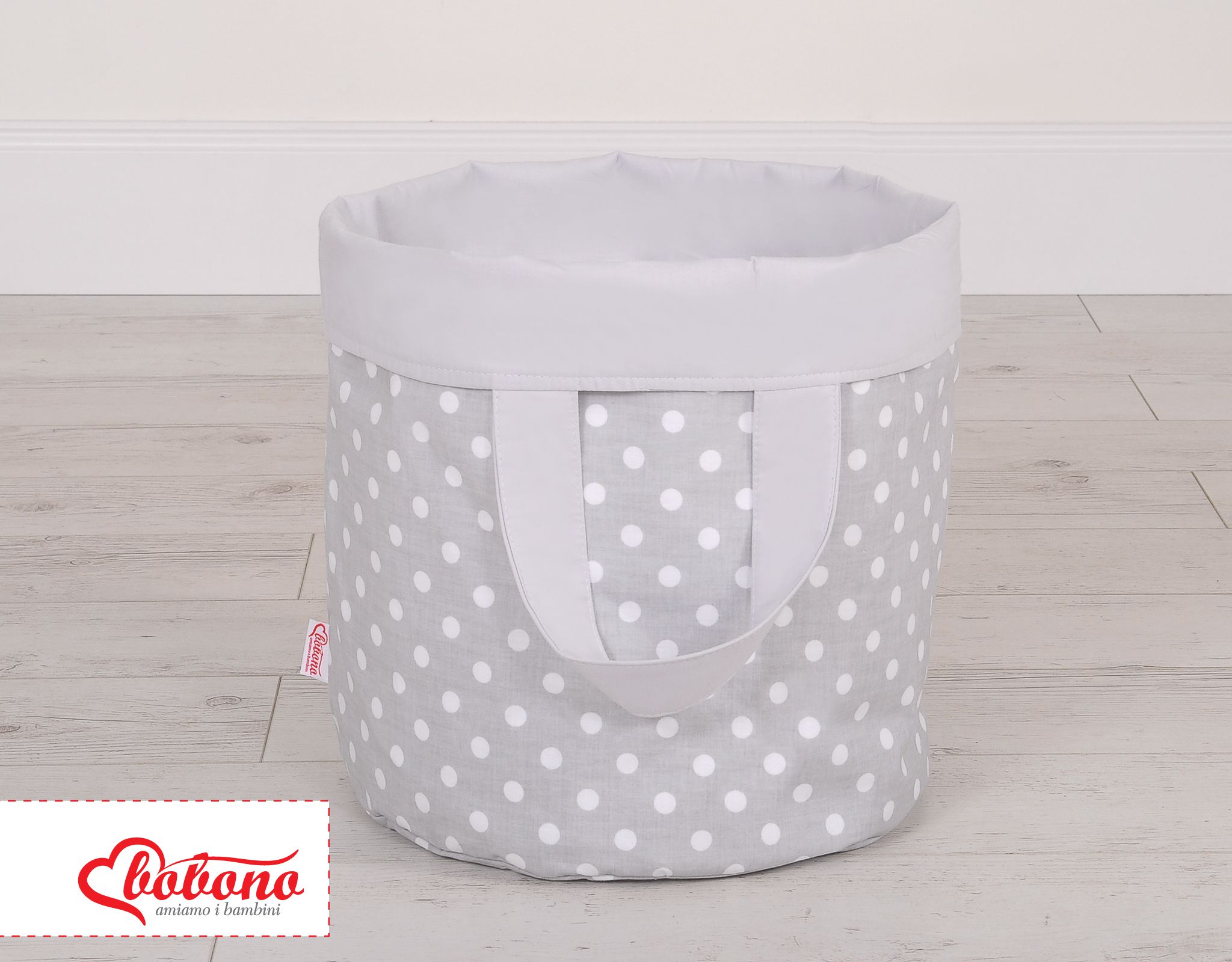 Hjemmeside » Legetøj & Hyggeligt Legetøj » Dobbeltsidet legetøjskurv » Dobbeltsidet legetøjskurv L » Kurv til legetøj L Grå Polkaprikker
