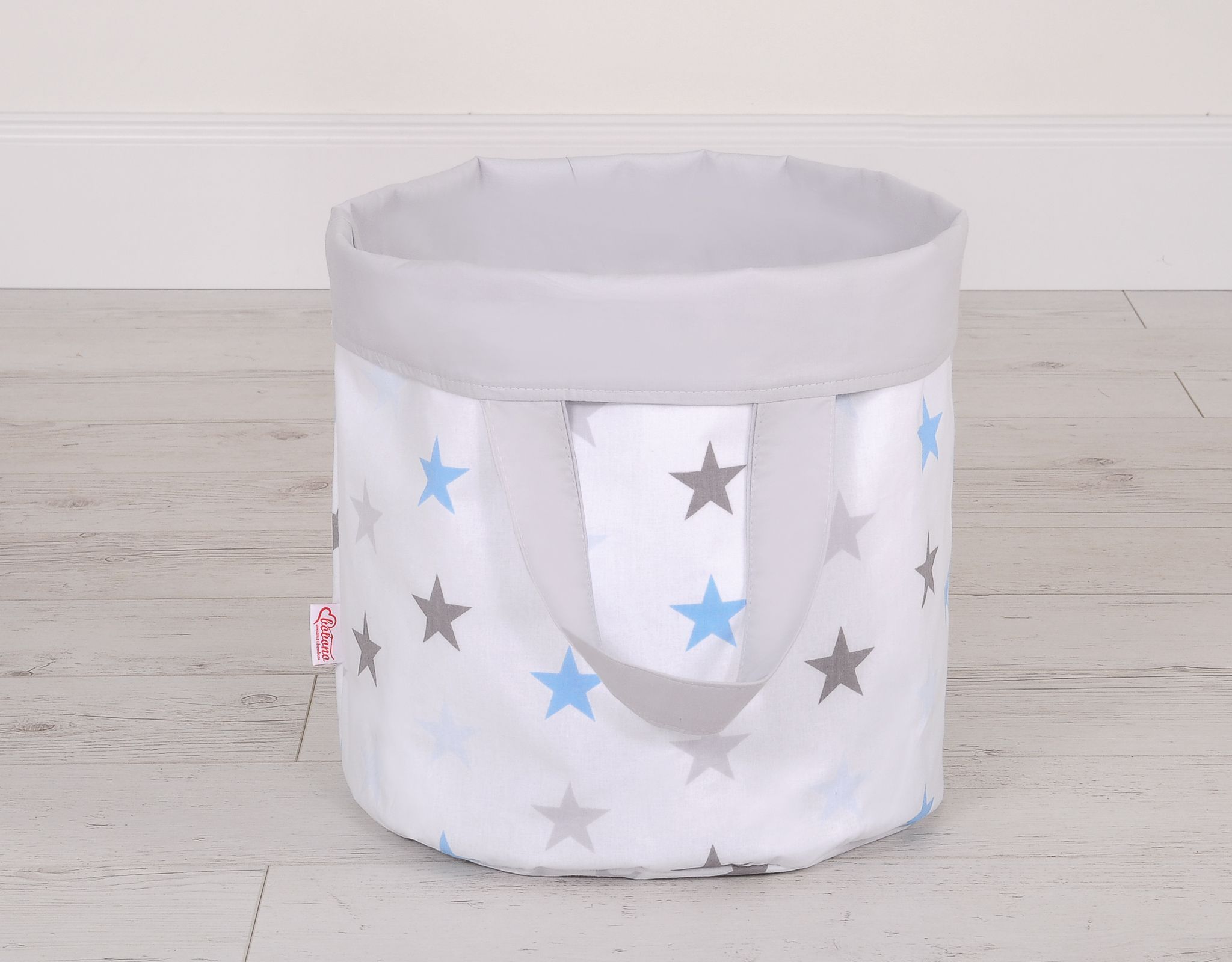 Hjemmeside » Legetøj & Hyggeligt Legetøj » Dobbeltsidet legetøjskurv » Dobbeltsidet legetøjskurv S » Kurv til legetøj S Grå Blå Stjerner