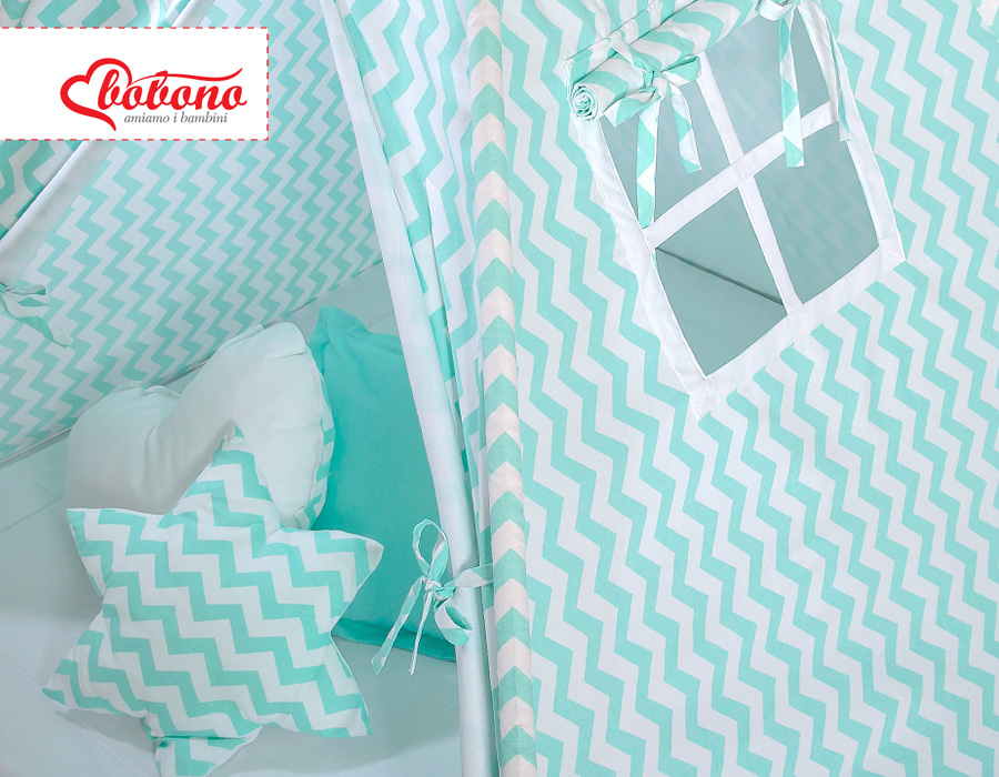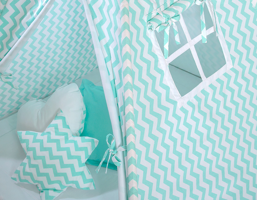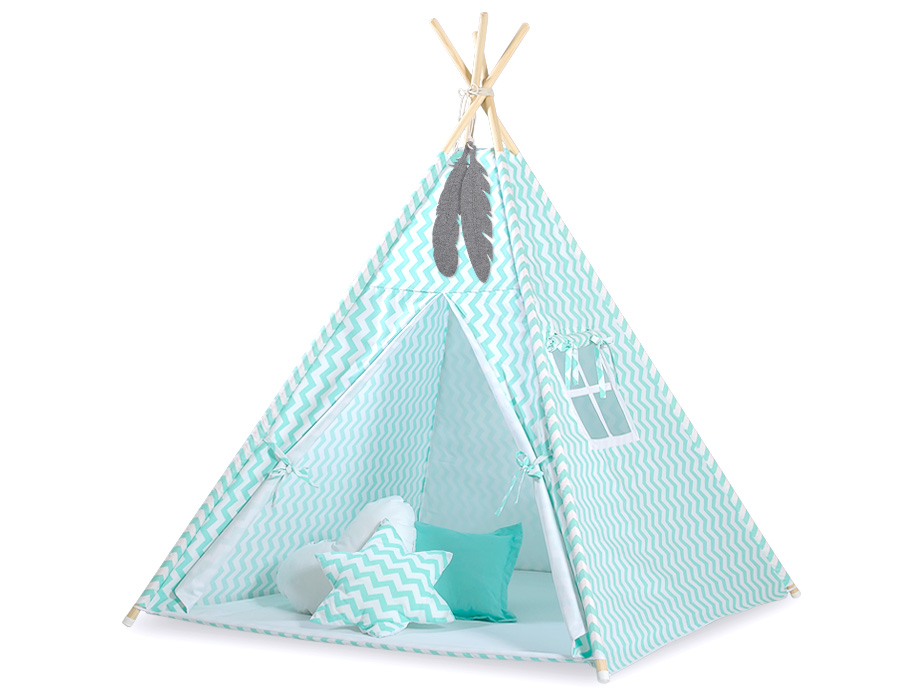 Hjemmeside » Legetøj & Hyggeligt Legetøj » Tipi telte » Mega Sæt: Tipi Telt med Legetæppe og Puder » Mega Sæt: Børne tipi telt med legetæppe og puder + dekorative fjer GRATIS! Mint Siksak