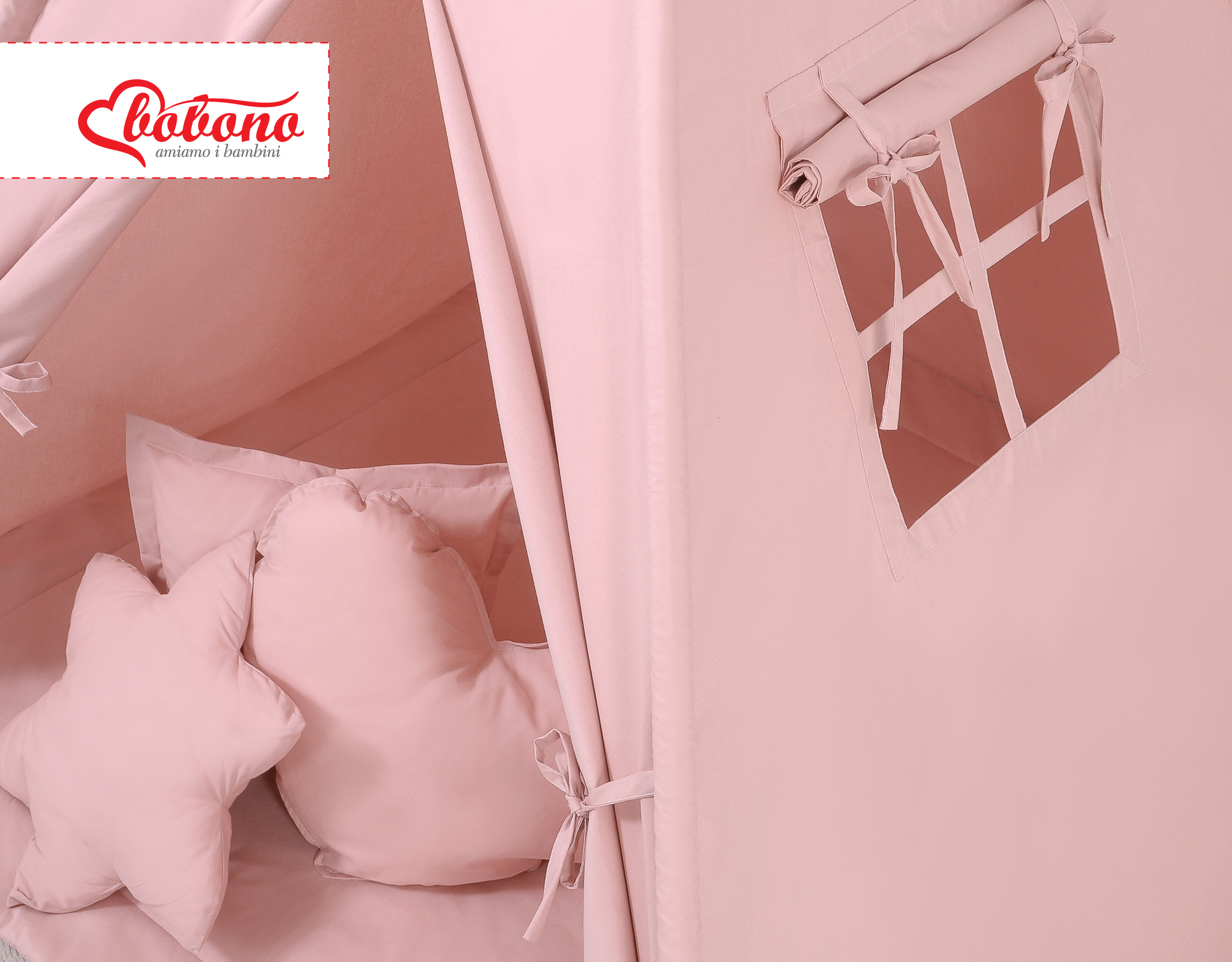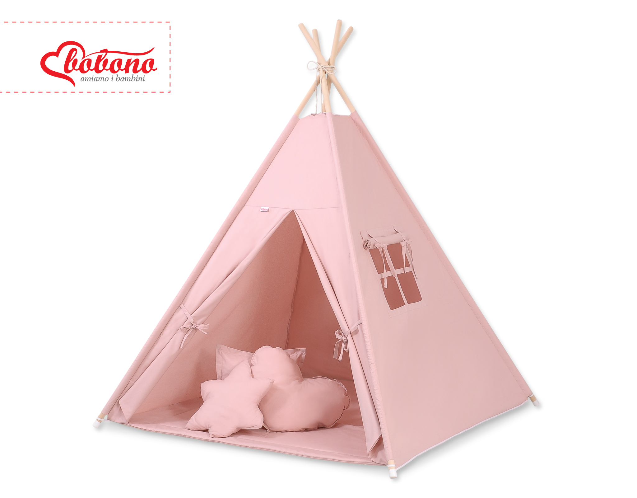 Mega Sæt: Børne tipi telt med legetæppe og puder + dekorative fjer GRATIS! Støvet Pink