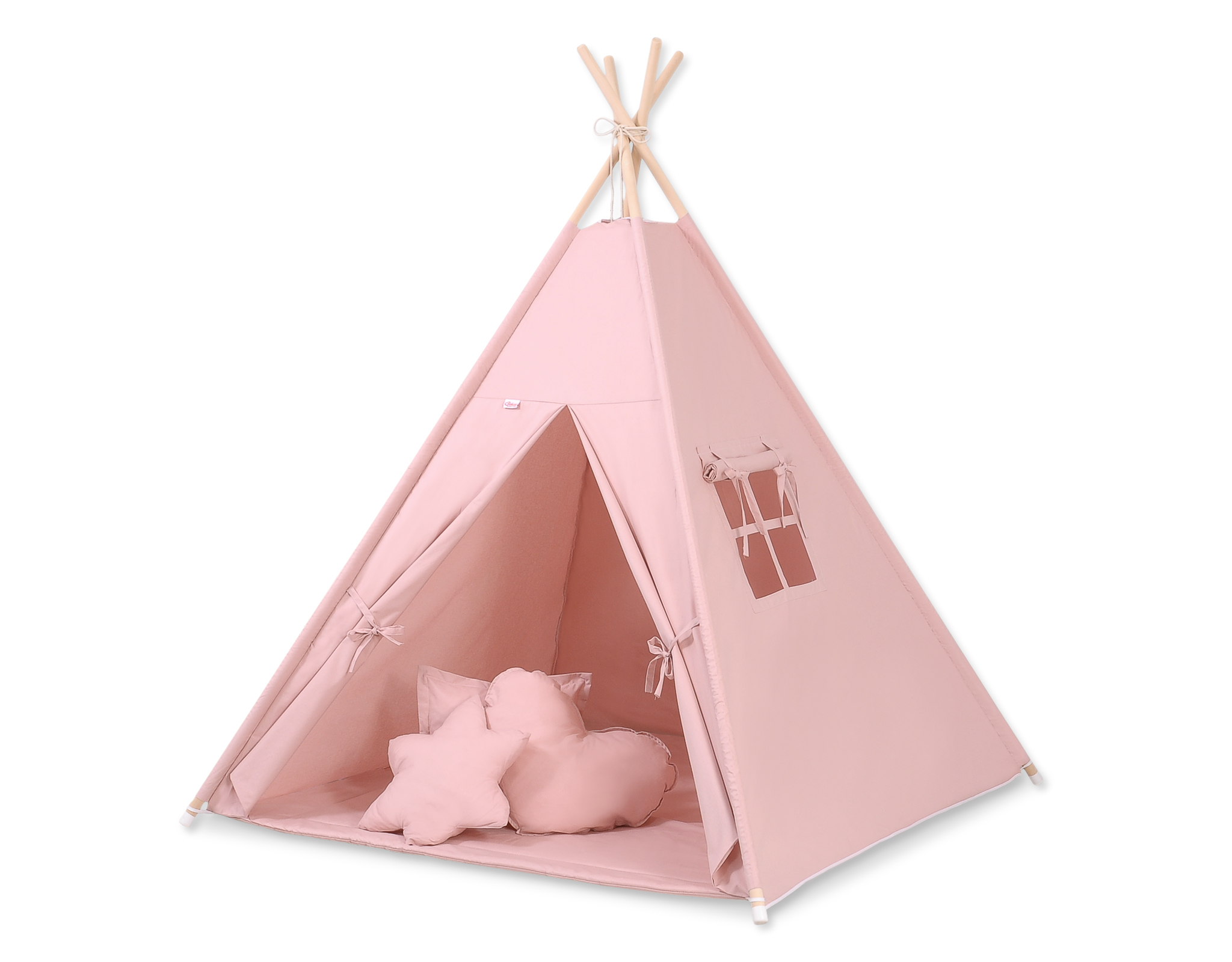 Mega Sæt: Børne tipi telt med legetæppe og puder + dekorative fjer GRATIS!  Støvet Pink